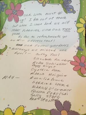 April – Cathy Neil, Elizabeth Ruediger, Helen Schindler, Peggy Wright, Cynthia Penn, Maria Holguin, Joan Bessman