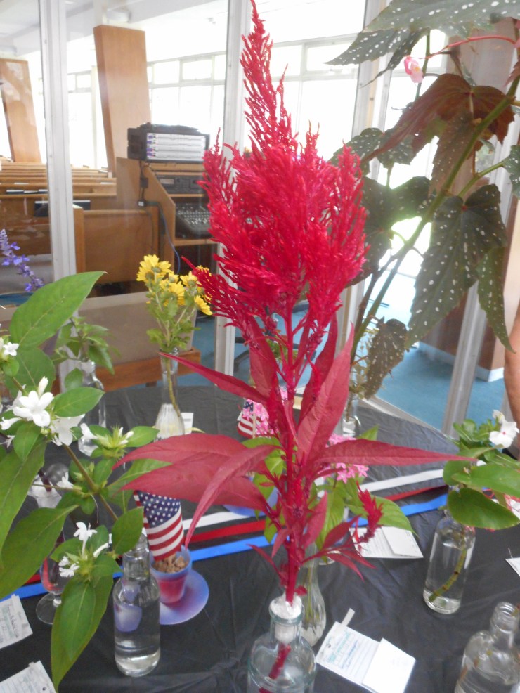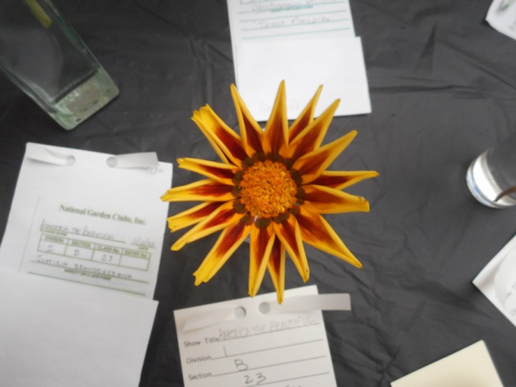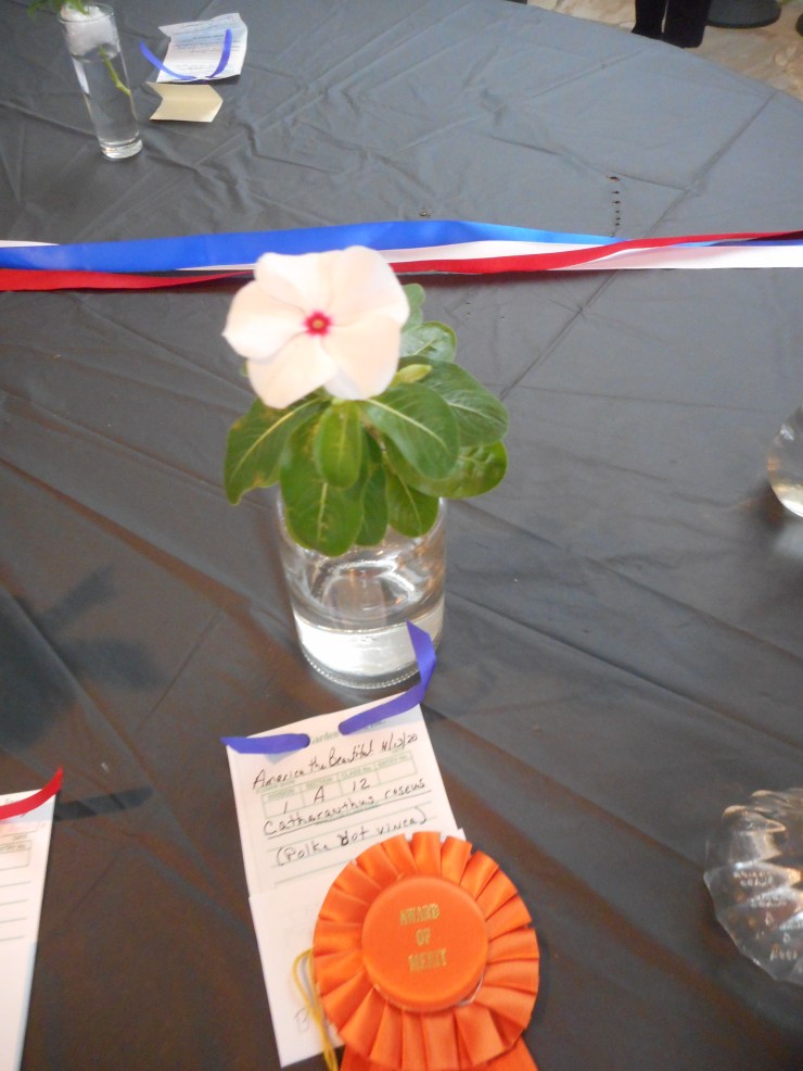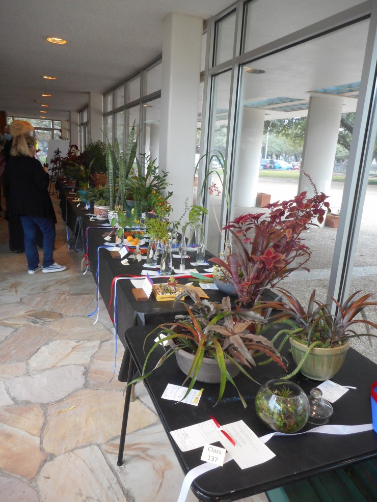 The Woodlands Garden Club member Mary Vacek, a flower show judge, kindly explained the standards and awards in the horticulture division – red, blue and white ribbons.