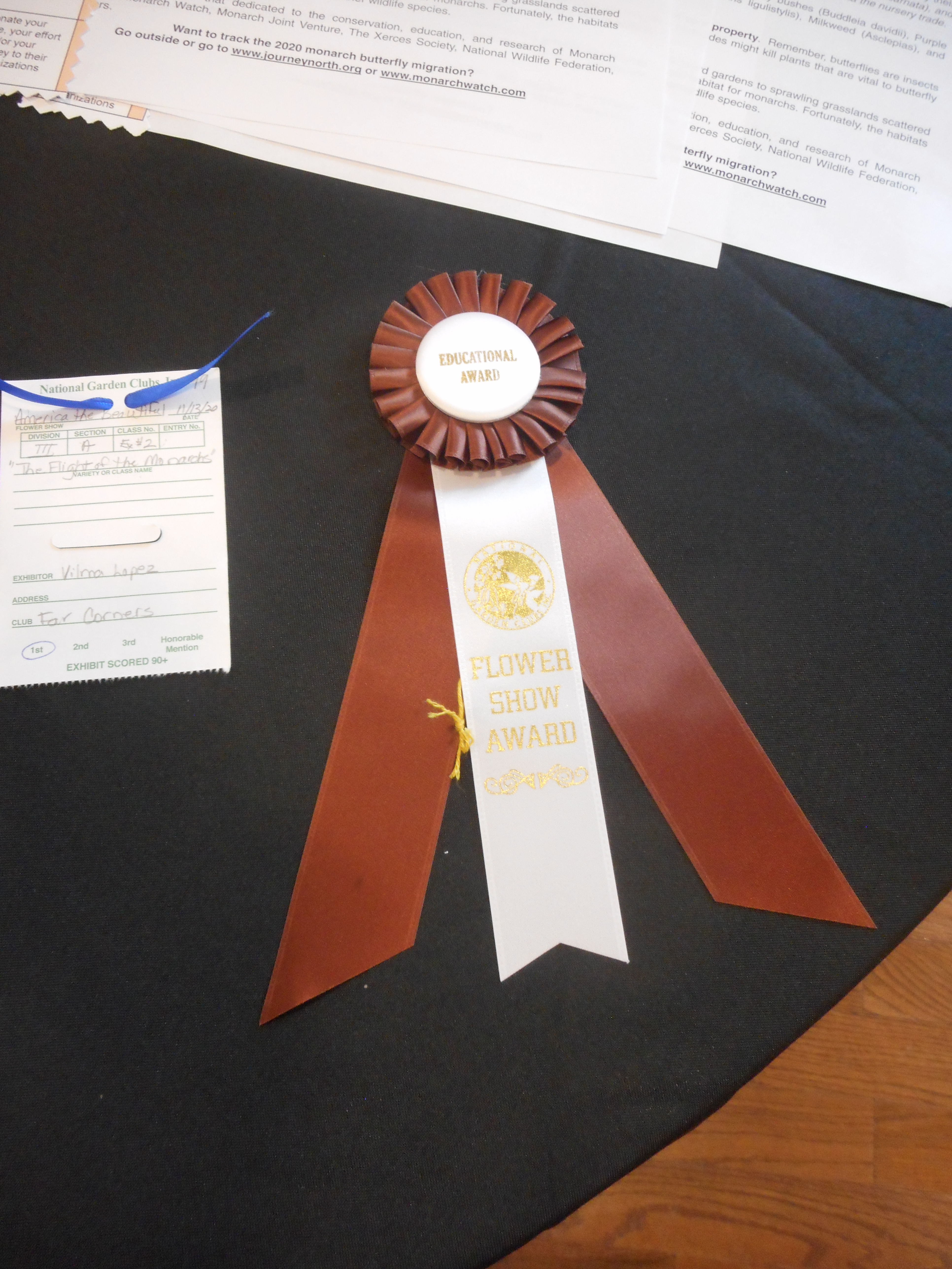 Congratulations to The Woodlands Garden Club member Vilma Jurado taking 1st place in the educational category with her presentation of “The Flight Of The Monarchs.” Yes, that’s a real live caterpillar on the milkweed!