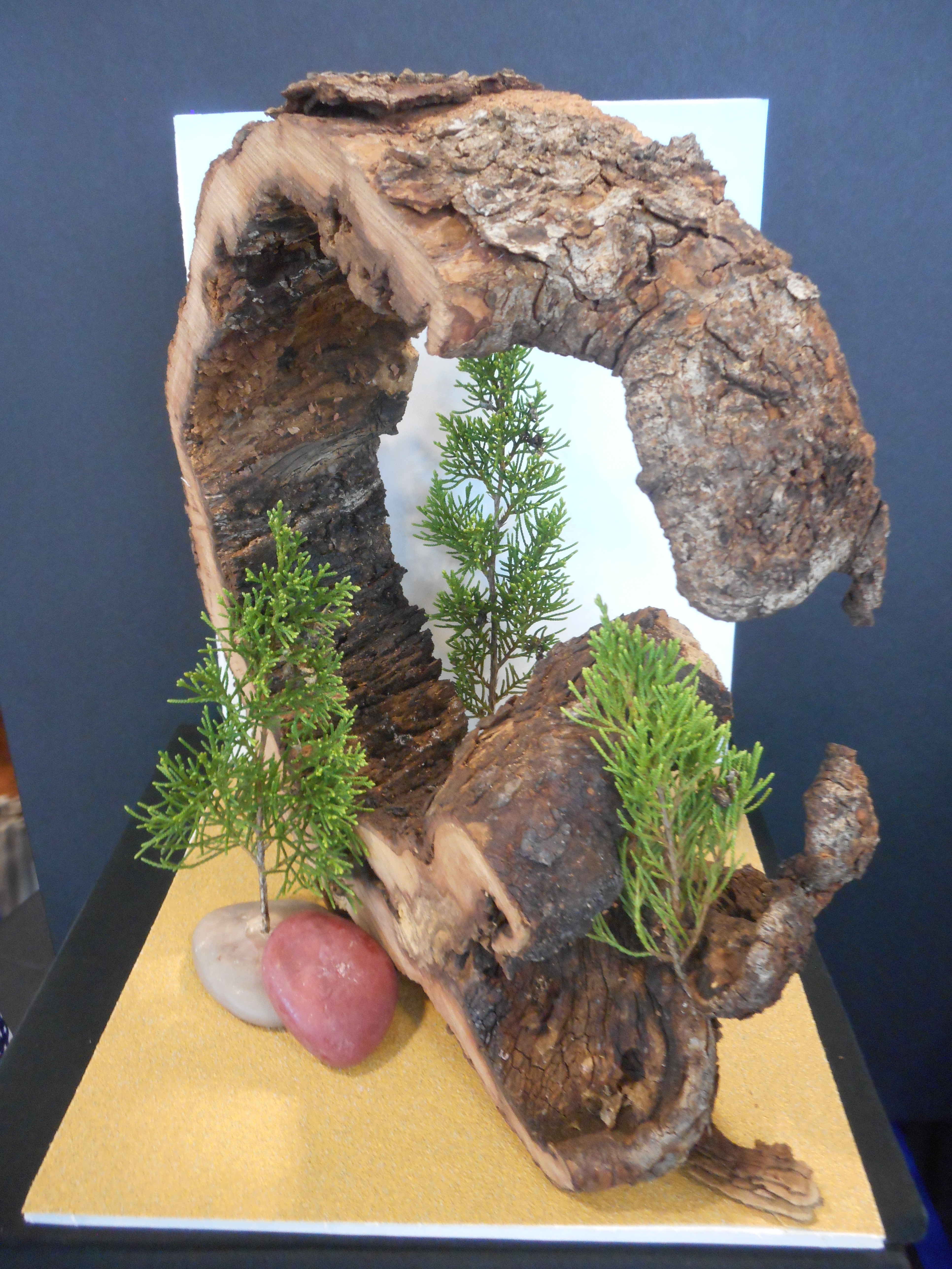 Floral design “From Sea To Shining Sea” starting with Niagara Falls (Cascade Design) to Bryce Canyon (Construction Design) to the Giant Sequoias (Transparency Design), with Mary presenting her entry “The Mighty Wonder Of The Hoodoos,” using Butterfly Ginger (Hedichium coronarium) for her plant material. Wow!