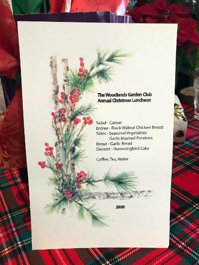 It’s beginning to look at lot like Christmas! The Woodlands Garden Club Board Members organized another fabulous event with a delicious luncheon and fun gift exchange. Betty created the stunning decor and table ornaments, and Mary collected gifts for the women’s shelter. This is also a wonderful opportunity to thank Detlev, our talented and enthusiastic photographer, for documenting our happenings throughout the year.