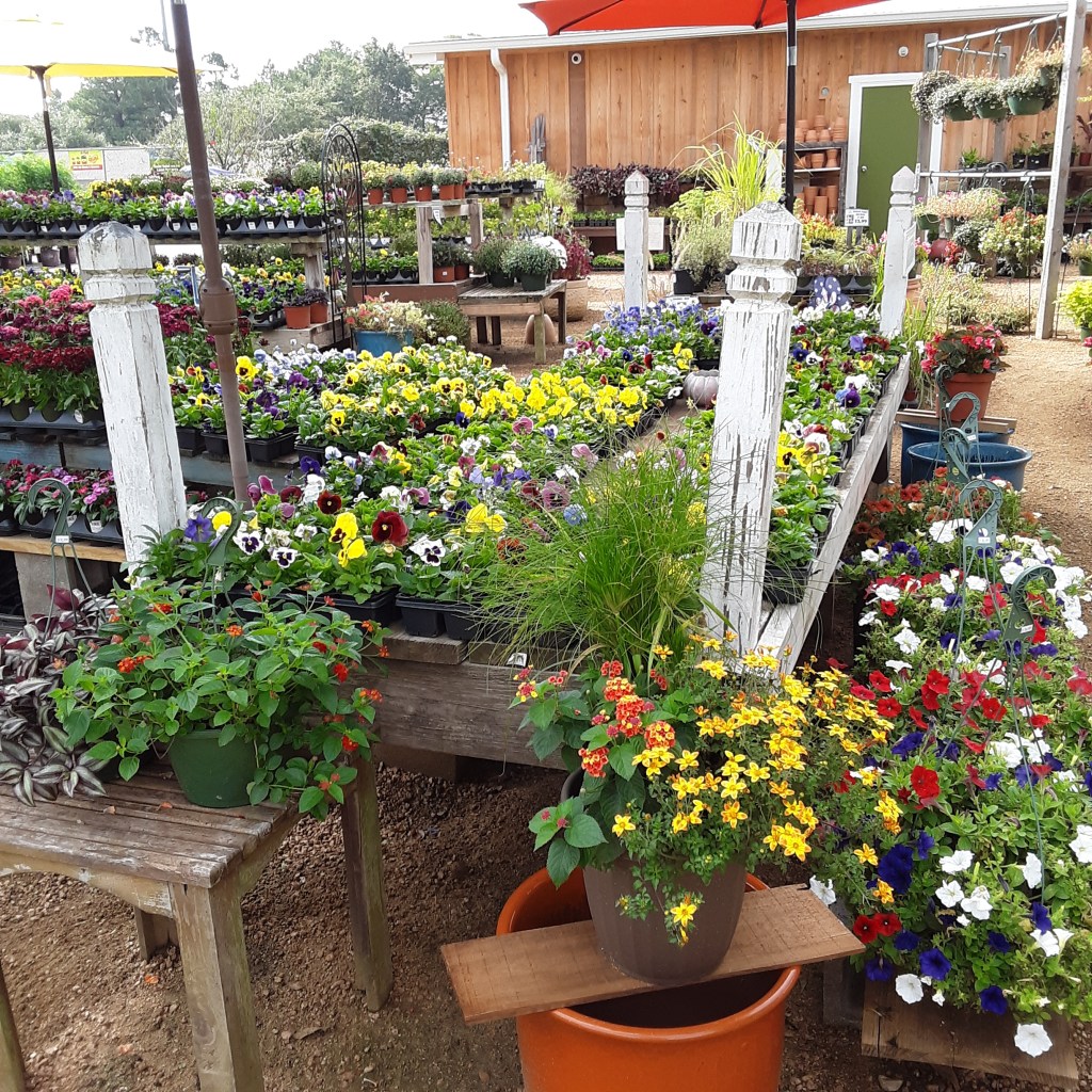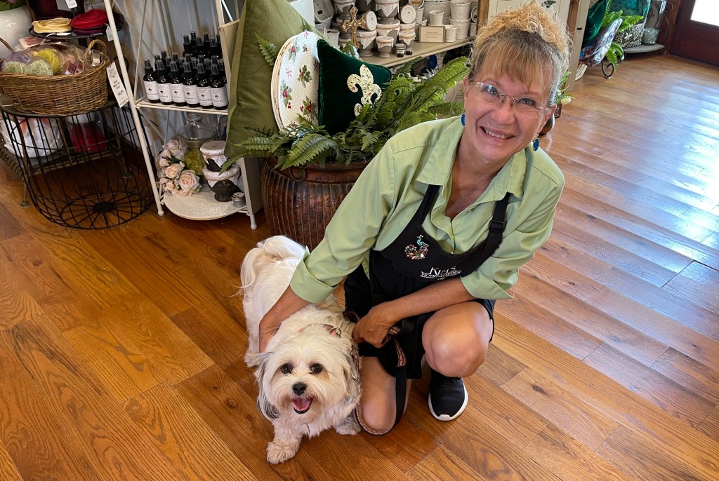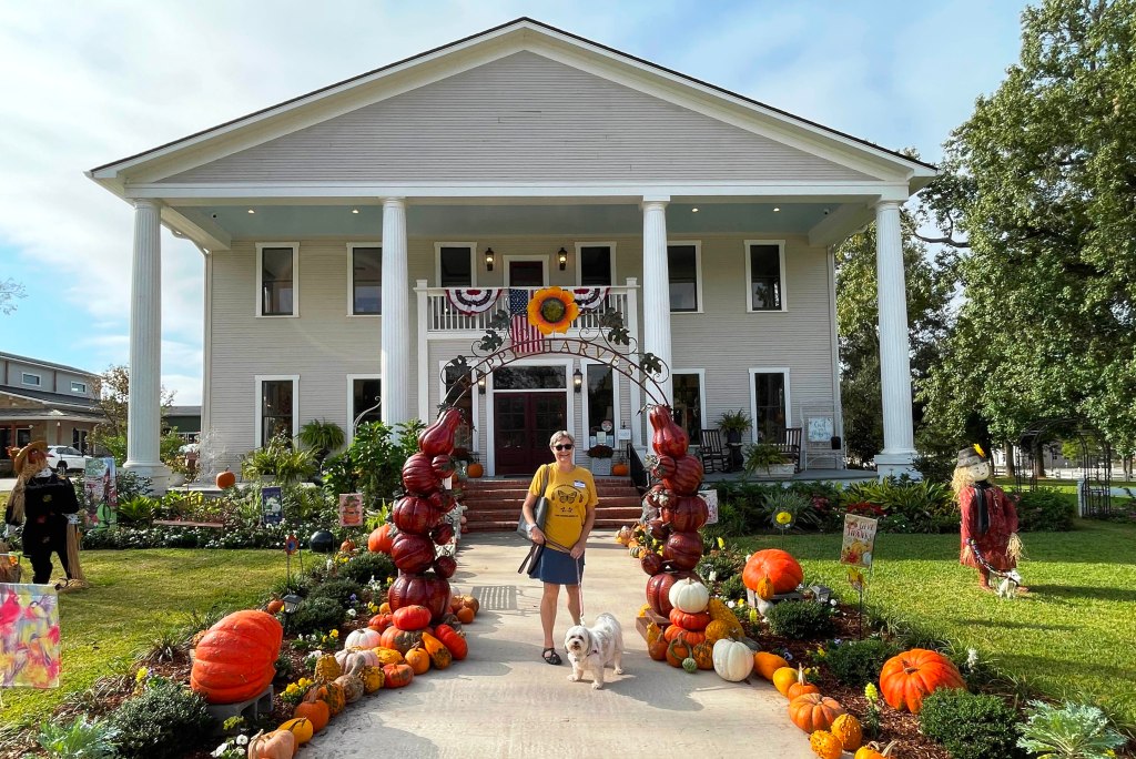 Those of us who had not been to Kim’s new location were in for a treat – complete with pumpkins and scarecrows! They specialize in heirlooms, natives, and hard to find varieties, and the staff is friendly and knowledgeable. They have amazing selections of pottery, fountains, statuary, and garden decor, and offer design and installation services for commercial and residential landscape projects. The shops are filled with treasures and there are gorgeous trees on the property including one of the oldest gums in Texas. Kim gave us an update on the progress and Karen made fast friends with Detlev’s dog, Tara Marie.
