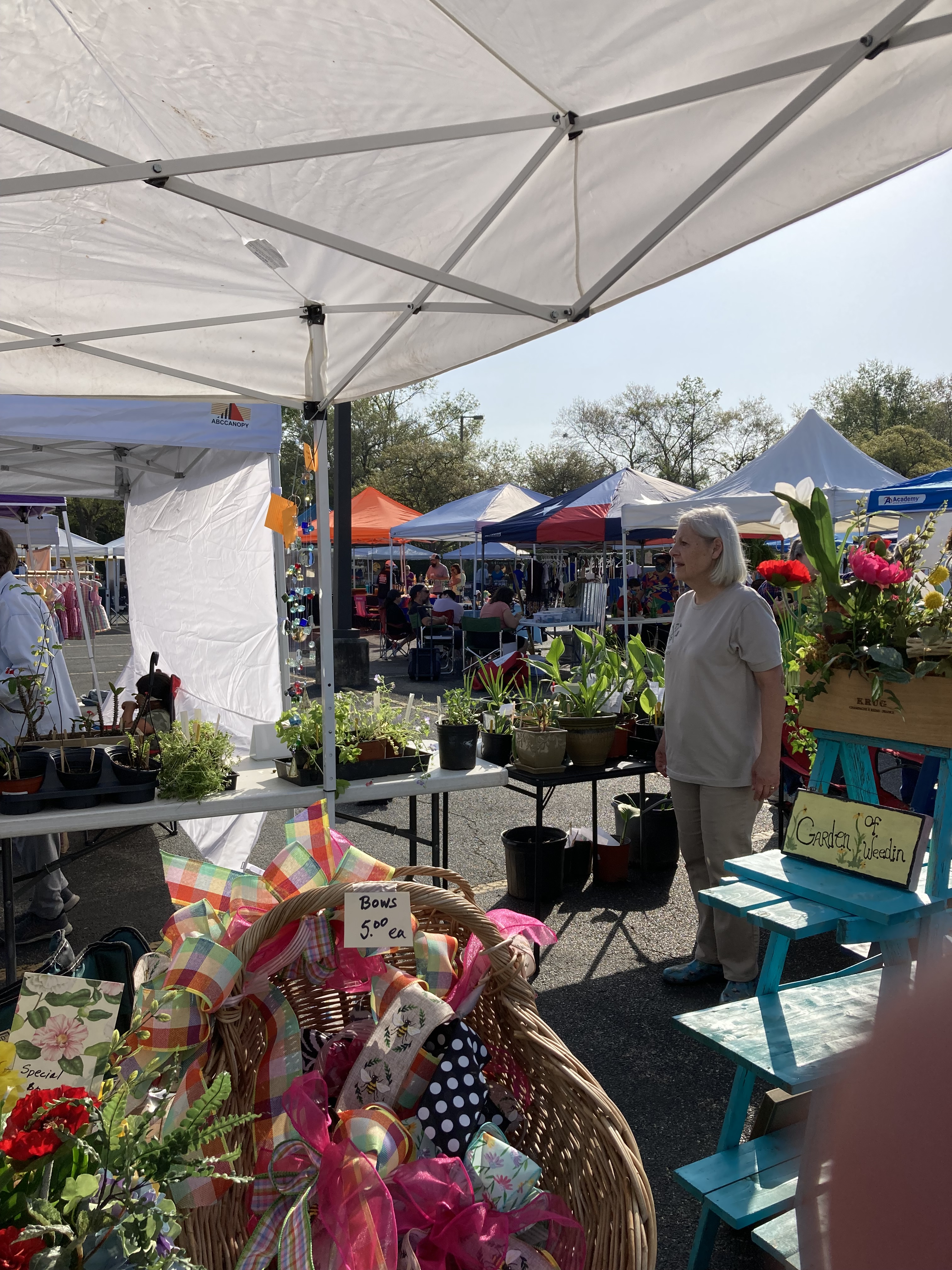 Our biggest fundraiser of the year is the spring plant sale at The Woodlands Farmers Market in Grogan’s Mill. Proceeds from the sale are used to fund TWGC education programs and community service projects. Our garden club members donate plants from their gardens and participate in workshops to make crafts. From Emily Hoppel at the farmers market: “Thanks for coming out! We always love having you at the Market!”