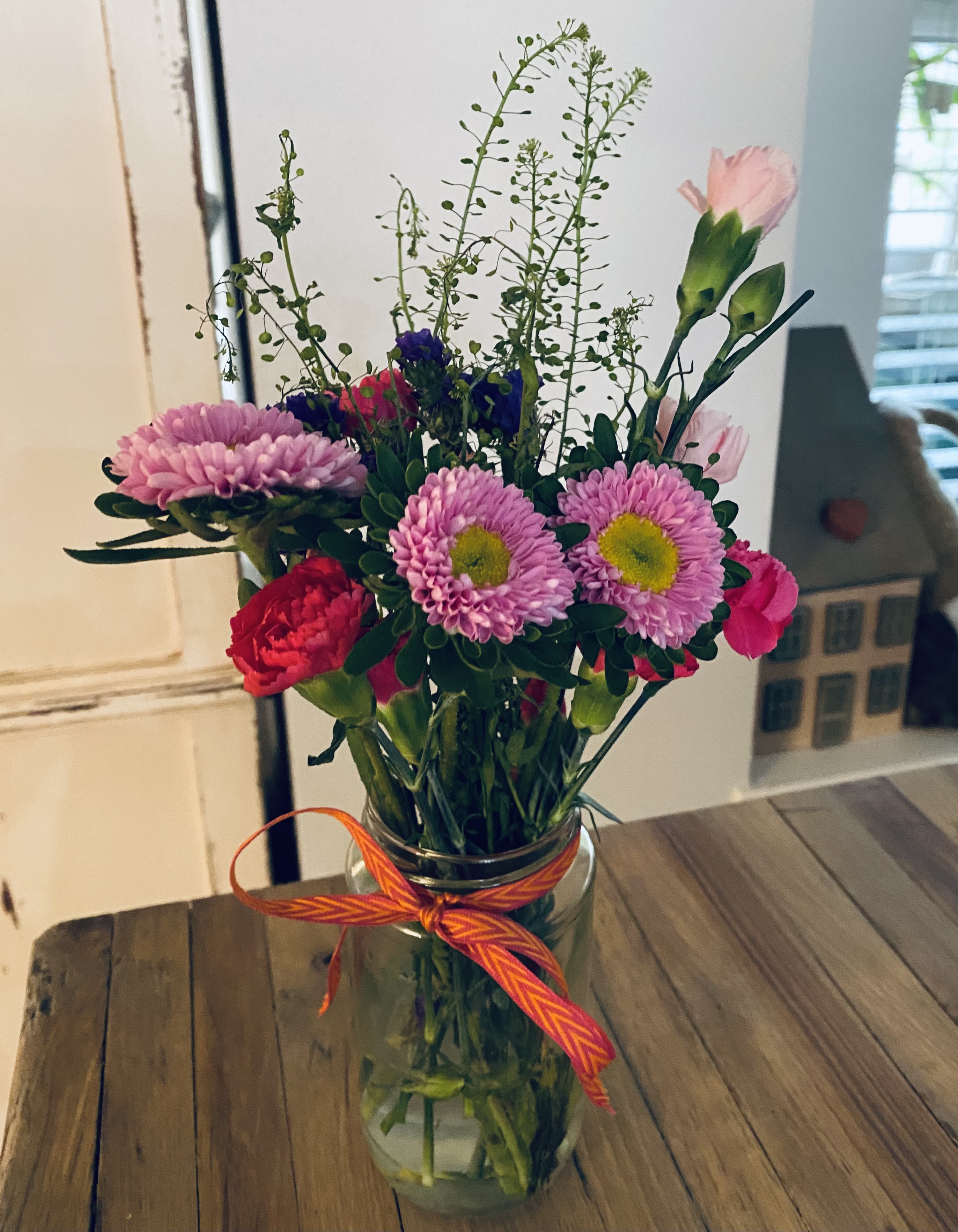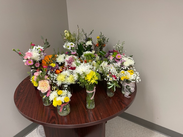 Monthly delivery of beautiful flower arrangements for hospice patients in The Woodlands. We gather flowers and greens from our gardens, add purchased and donated items from local stores, and finish it off with a pretty bow!