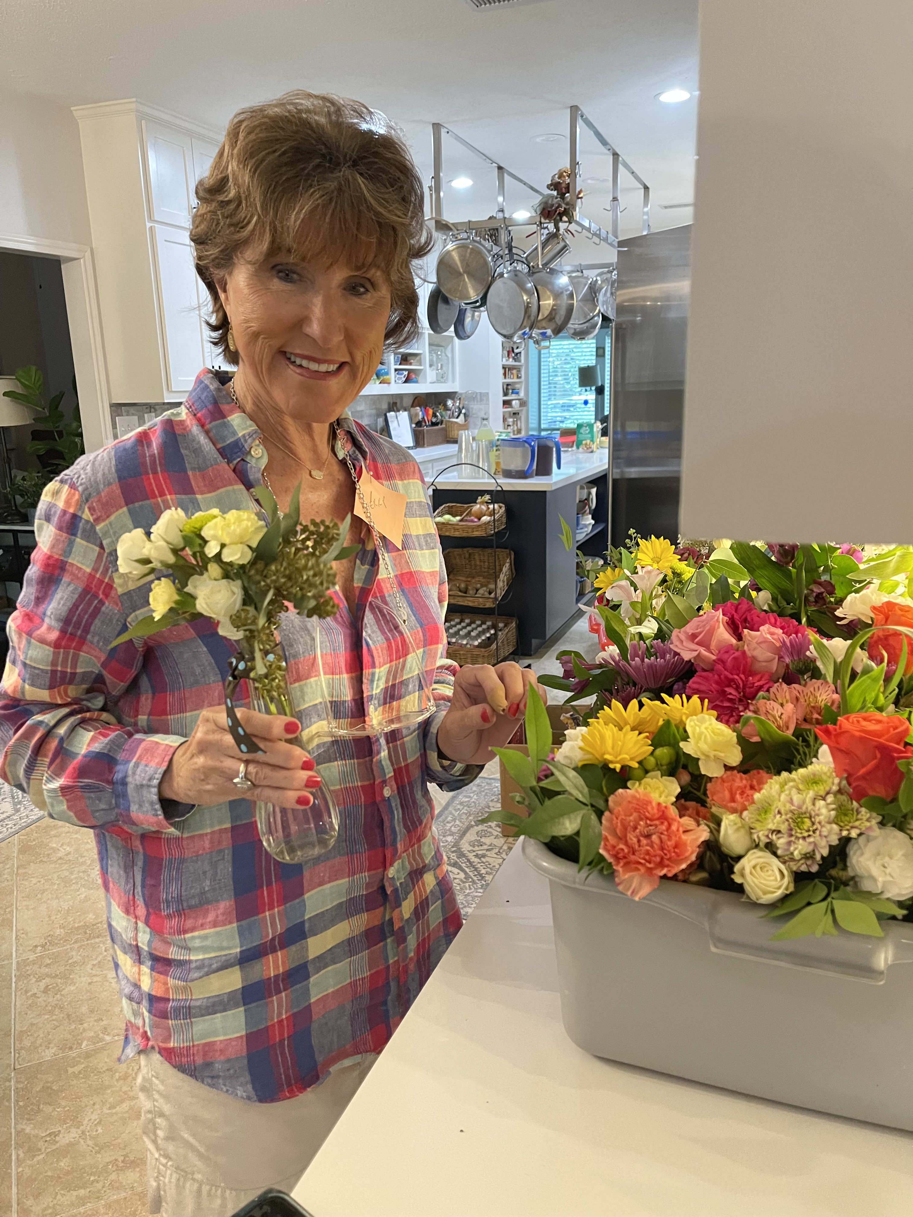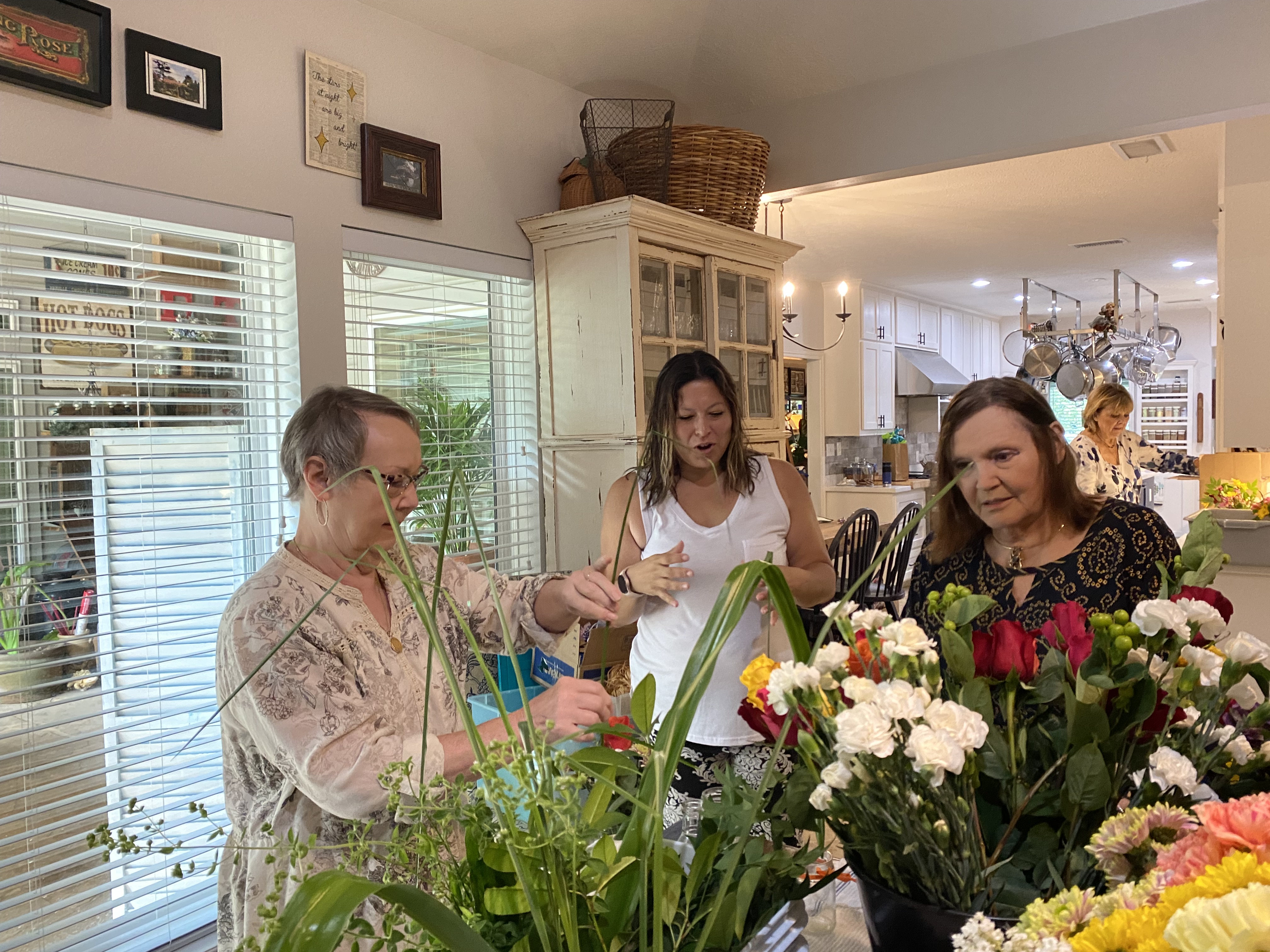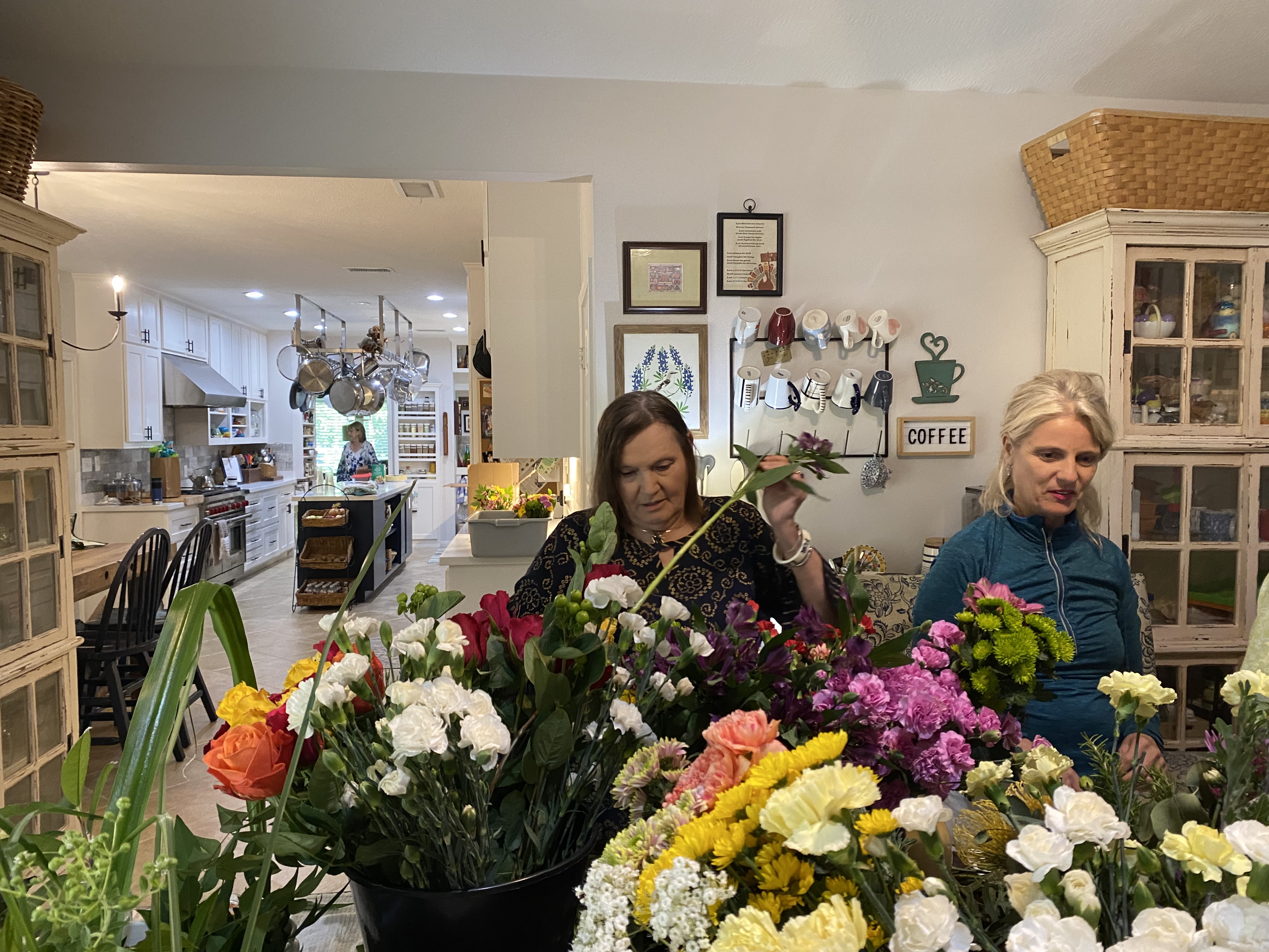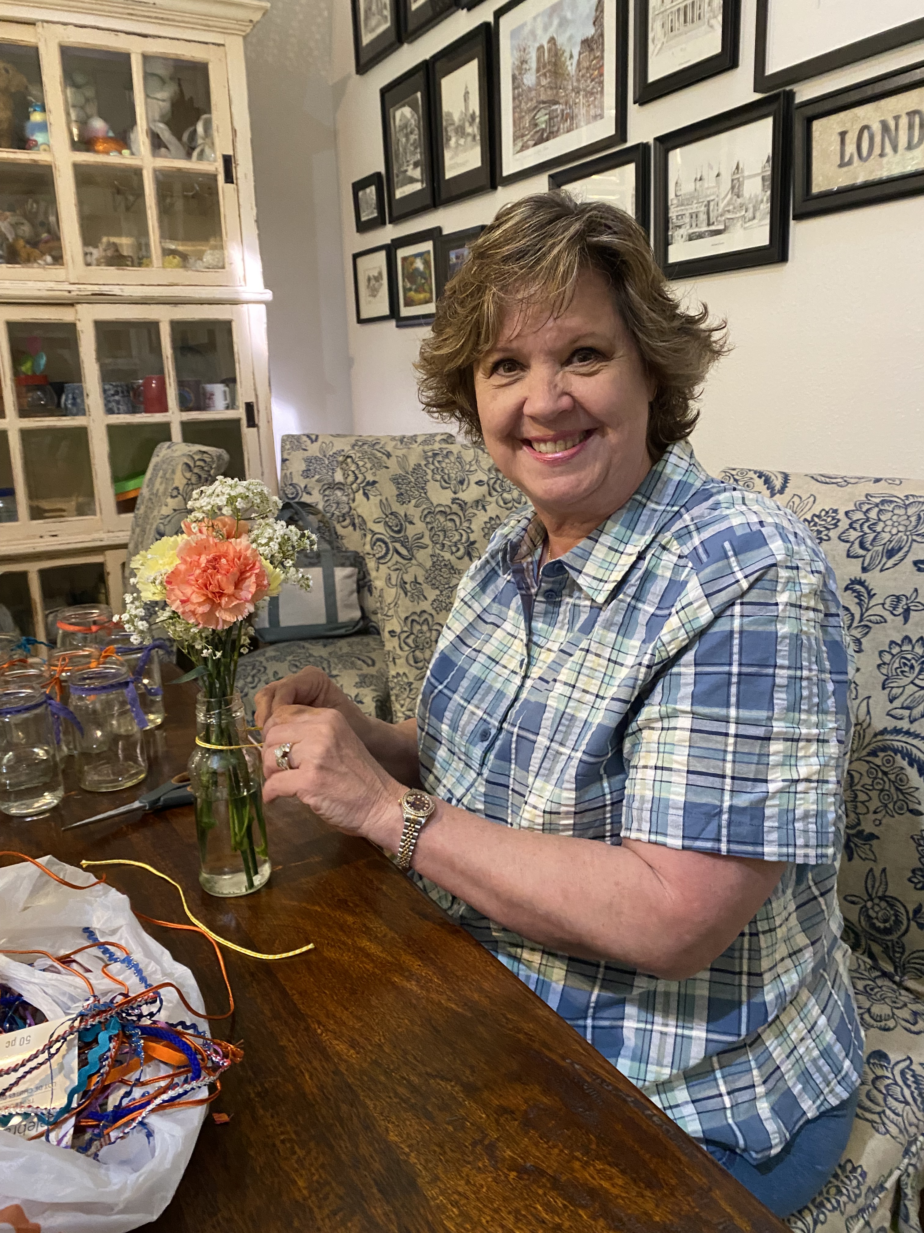 Floral Committee Chair Sherry Copeland prepares the delivery to the hospice agencies.