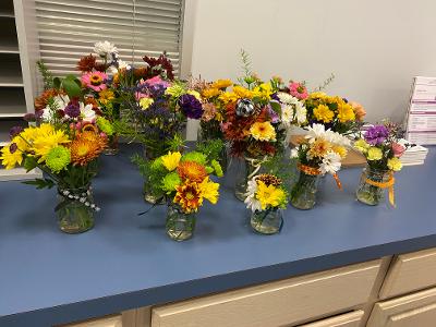 On the 3rd Tuesday of the month The Woodlands Garden Club Floral Group meets to make small vases for local hospice agencies. The club buys flowers, stores donate flowers (thank you HEB, Kroger’s and Trader Joe’s), and members bring flowers and greenery from their garden. We deliver to the hospice and the nurses take the floral arrangements to their patients.