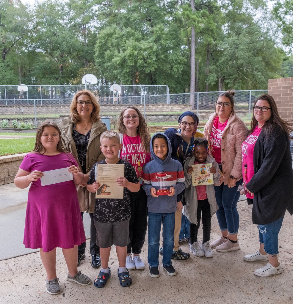 Gabriella Calabrese, The Woodlands Garden Club Youth Garden Awards Chair, visited the 3 selected schools and met with the teachers and the students. Each school received a $200 check, a gardening book, a hummingbird feeder, and a plant.