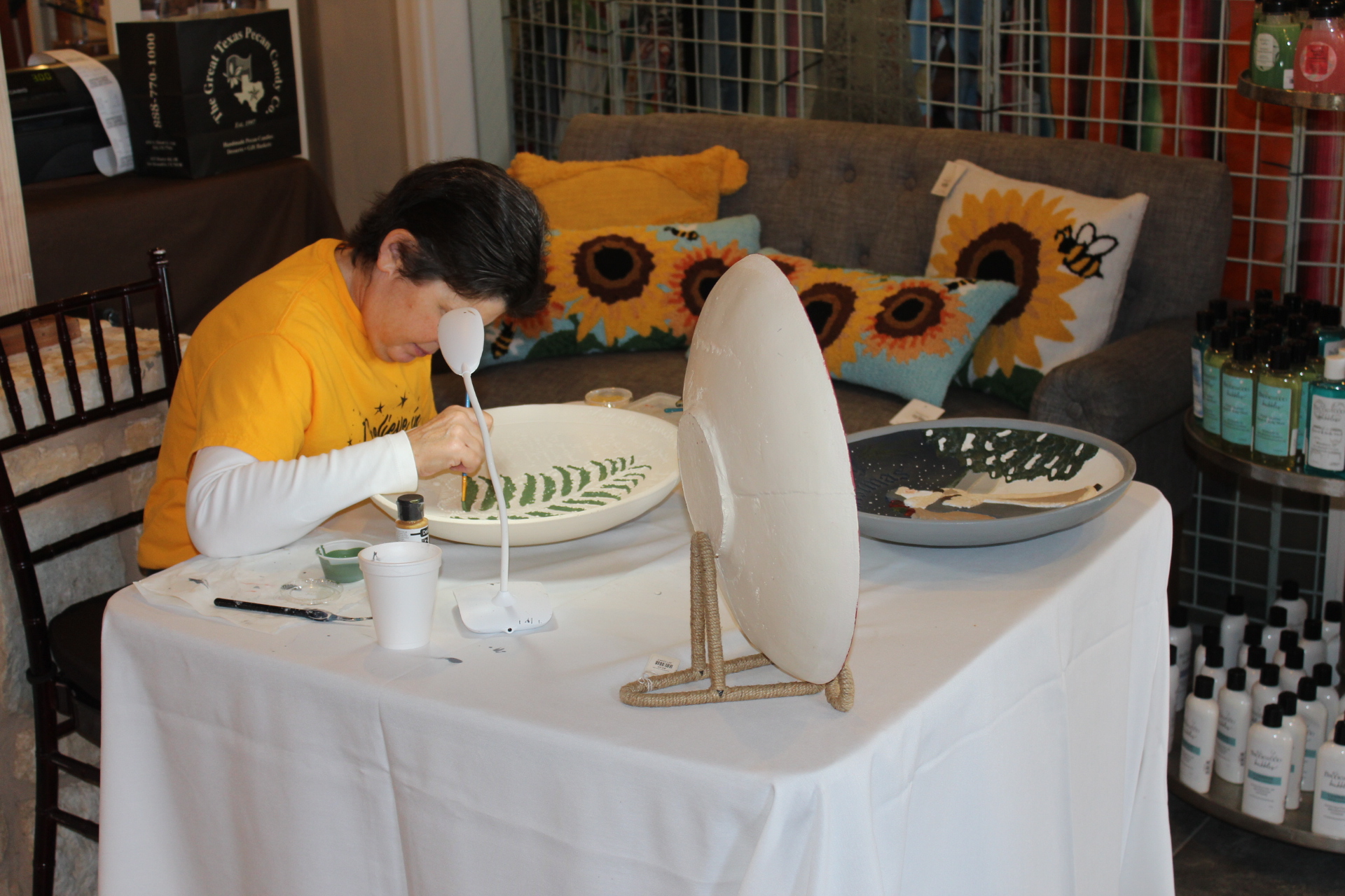We shopped for unique items and met the local artisan vendors, took advantage of the plant sales, and enjoyed a delicious luncheon. When Sharon found out one of our table companions was celebrating a birthday, she arranged for a cake with a candle and the entire staff to sing with us. Soon the entire dining room was participating and clapping! Vivian and Mauri enjoyed Brookwood’s Signature Salad so much they went back to the gift shop to buy the Mesibov Dressing. The gift shop sells “Citizen Made” products and we had the privilege of meeting one of the artists.