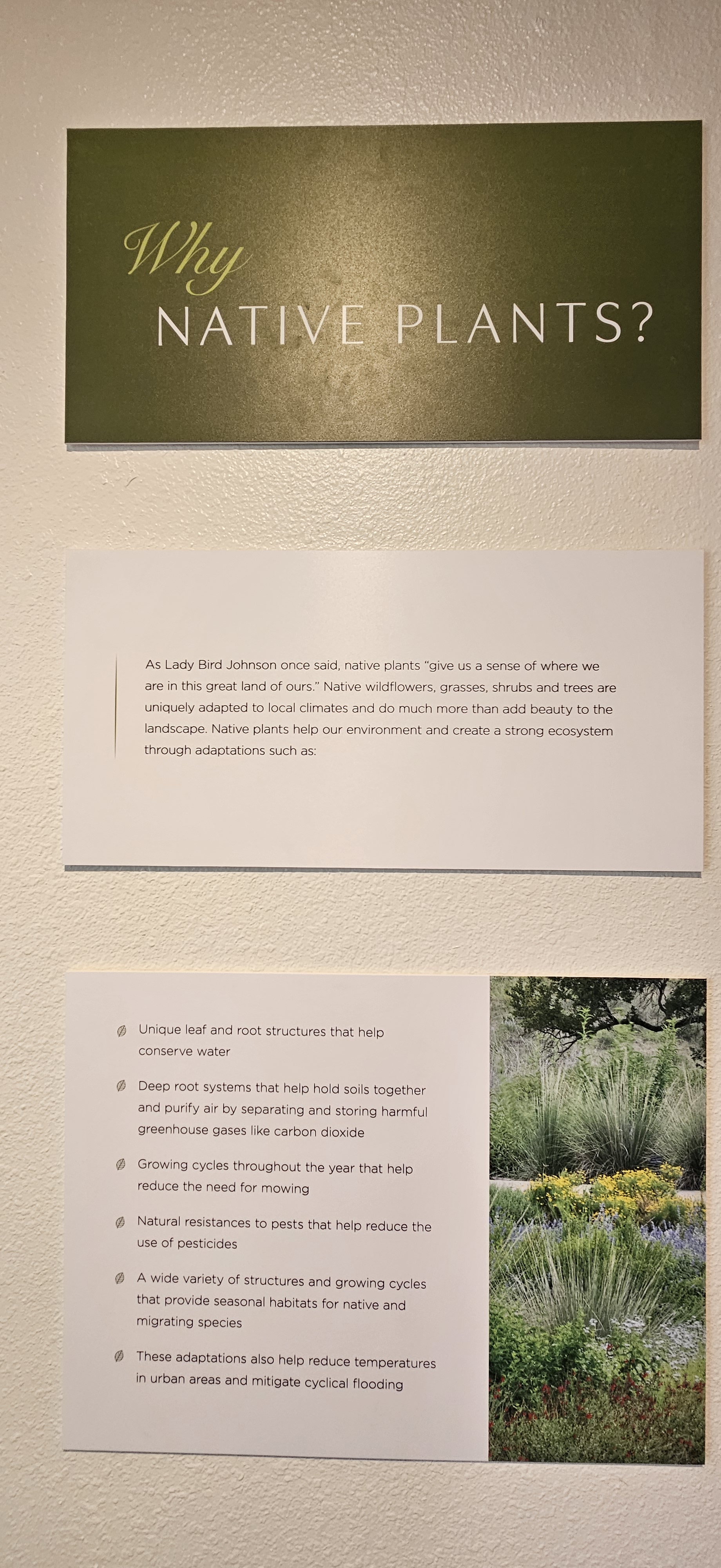What a beautiful day to make a visit to The University of Texas at Austin Lady Bird Johnson Wildflower Center. The center is dedicated to inspiring the conservation of native plants, and it did not disappoint. As the Botanic Garden of Texas, the Center displays native plants from across the state in its gardens and arboretum and serves as a model for creating beautiful, sustainable landscapes.