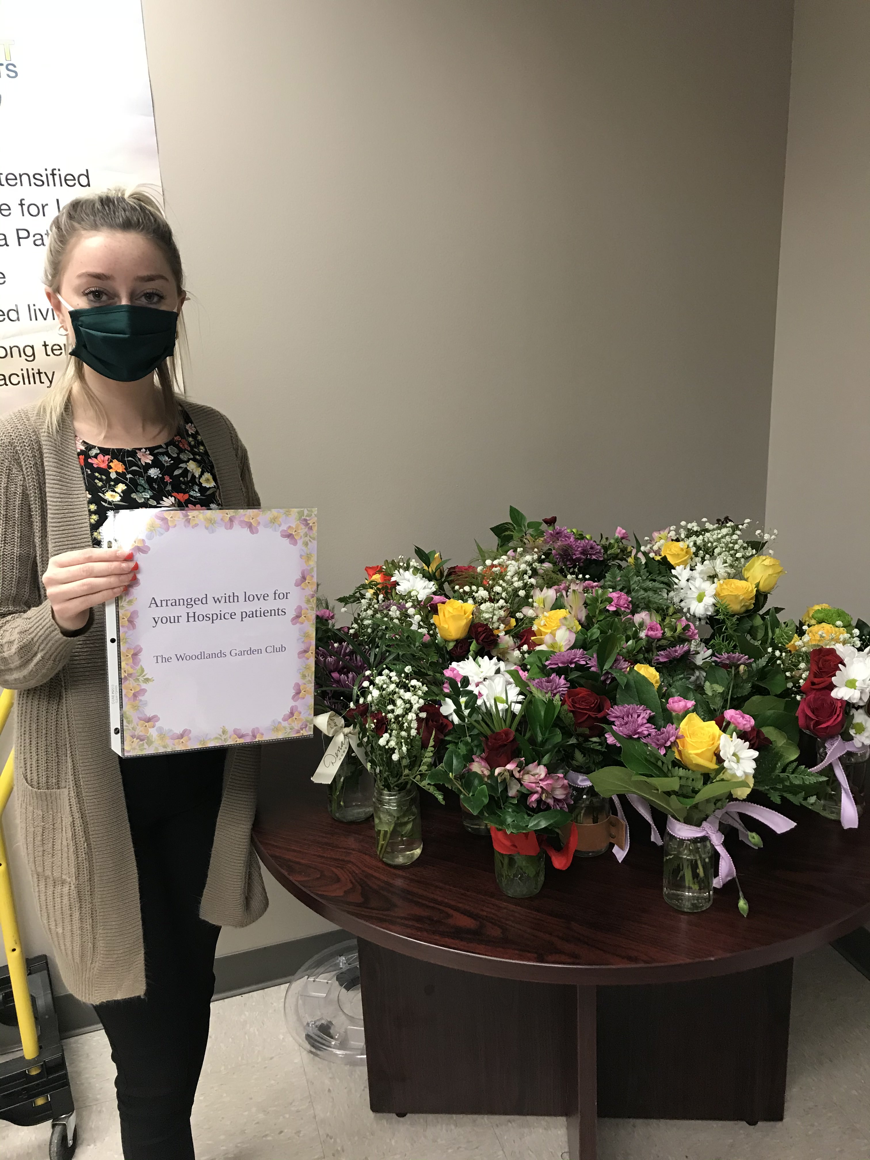 The Woodlands Garden Club Hospice Floral Group was started by Molly Peckels in 2013 in memory of her mother who had enjoyed receiving flowers from her local garden club when she was in hospice care. Molly has since passed away and we continue this wonderful program in her honor.