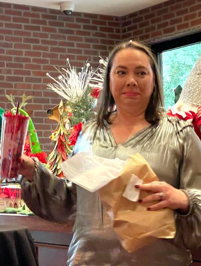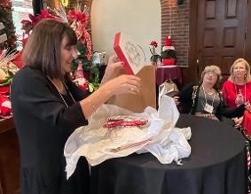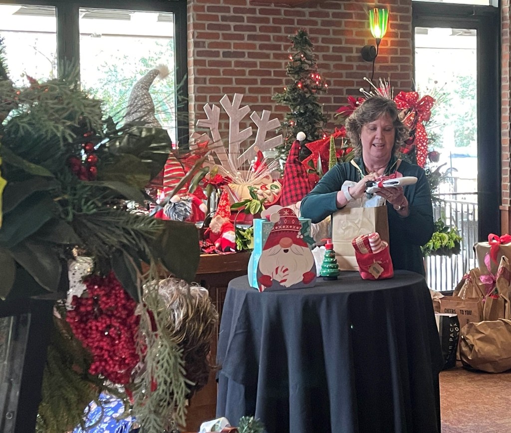 “Bad Santa” Sharon Podolski, a 1994 co-founder of The Woodlands Garden Club, orchestrated the gift exchange.