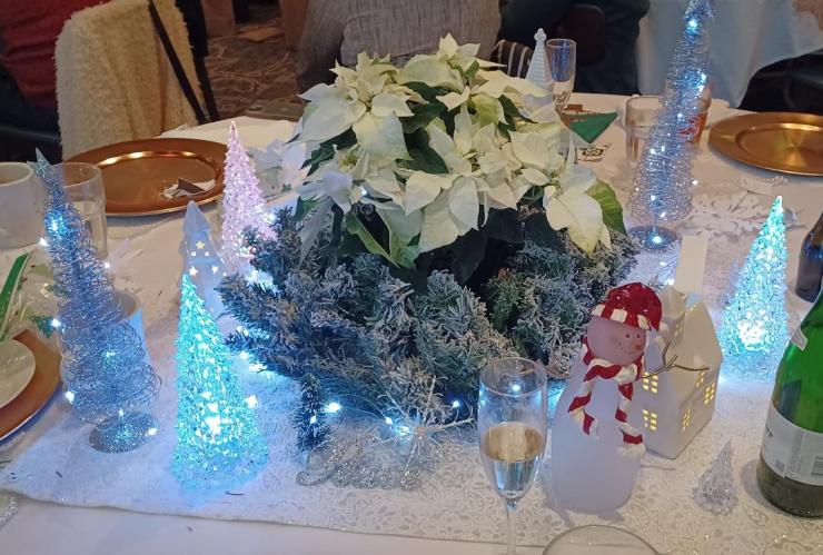 Sharon Podolski made beautiful Christmas tree napkins and Poinsettia napkin rings (and homemade cookies) for all members to take home as a memory of our wonderful Christmas party!