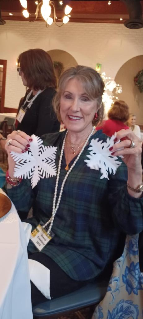 Sharon Podolski, one of our charter members, brought all the supplies and taught us how to make snowflakes that we didn’t have to shovel!!!
