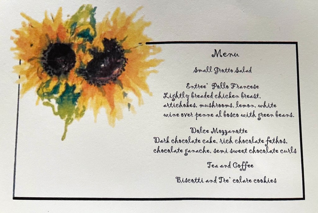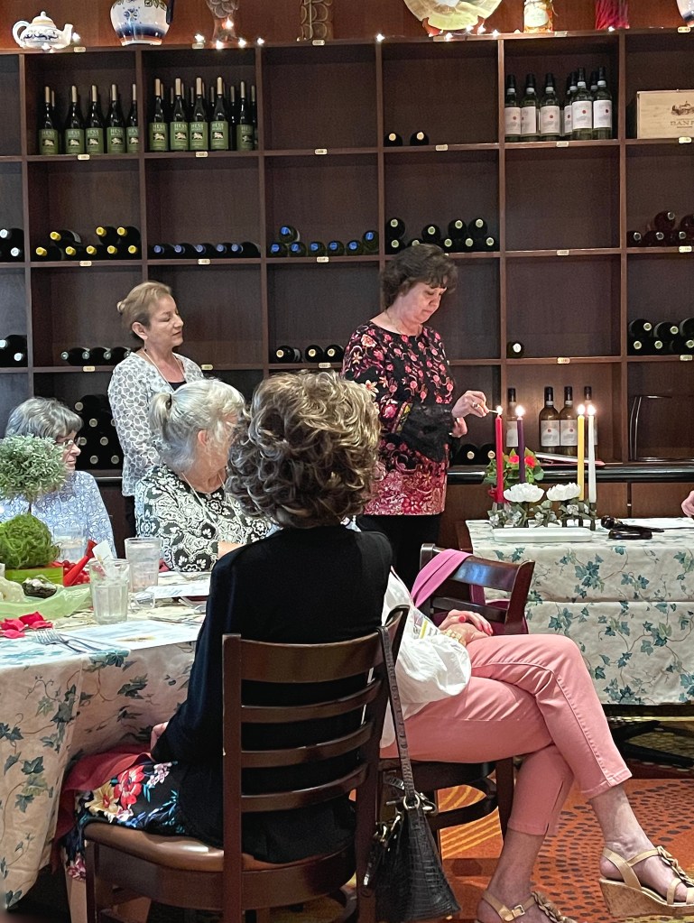 And then it was time to eat! Beautiful room and table decorations by Betty. On a sad note we learned that Grotto is closing at the end of May.