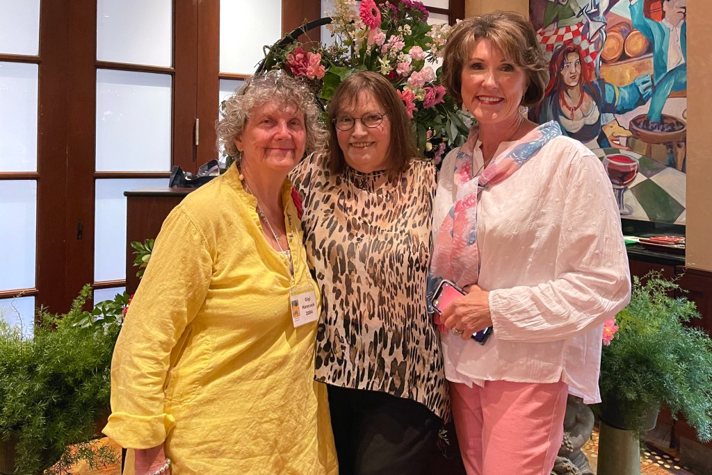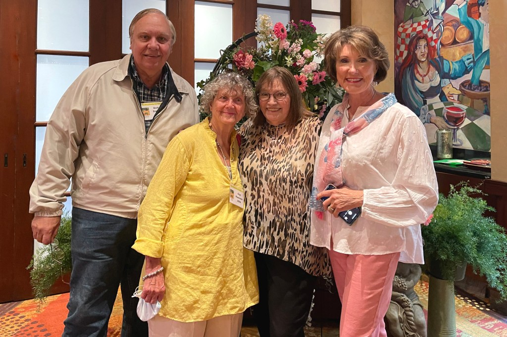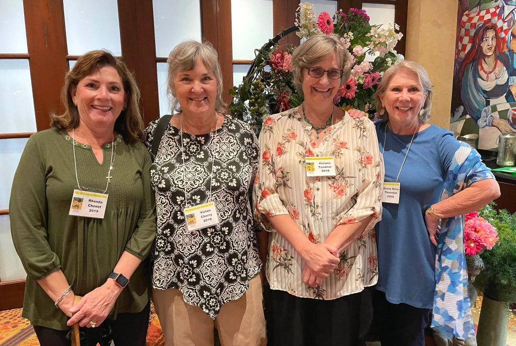 The Woodlands Garden Club last meeting of the year is a gala luncheon with the installation of officers for the next term: President Bitsey Crismon, Vice President Katherine Plenger, Treasurer Sabrina Crooke, and Secretary Sharon Podolski. The ceremony was conducted by Mary Barnes, a garden club founding member.