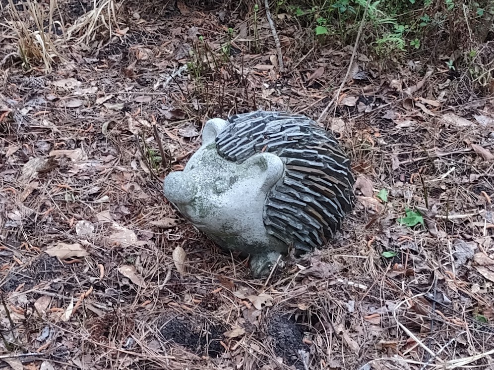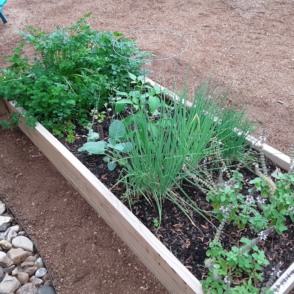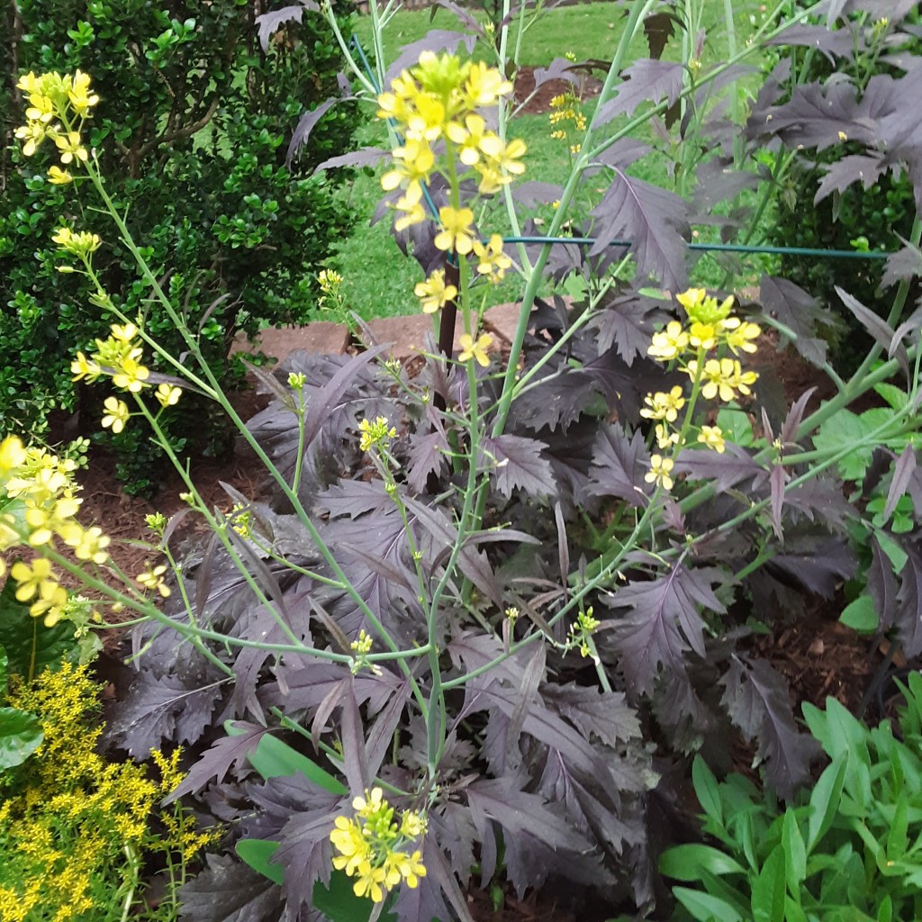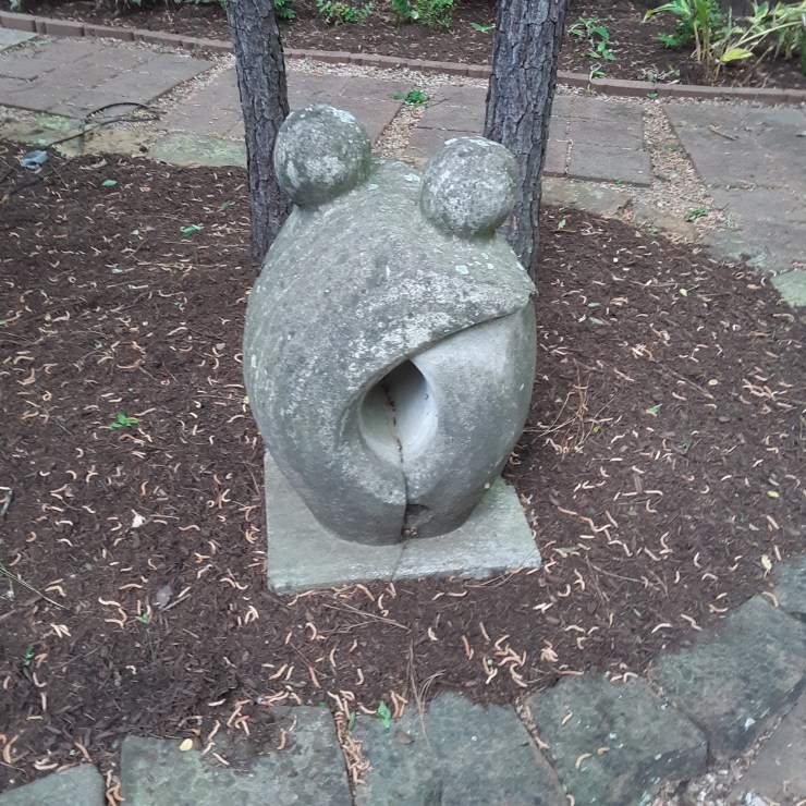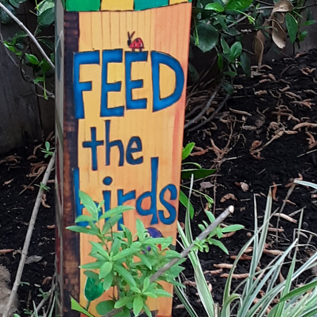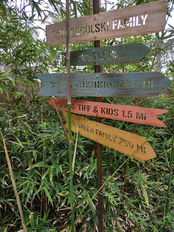 The tour ended with Sharon Podolski’s garden. Here the focus is on sustainable practices (compost bin, rainwater tank, pollinator plants) and home grown vegetables and herbs. Lots of cute decorations too, and the center of attention is the Podolski family mileage marker.