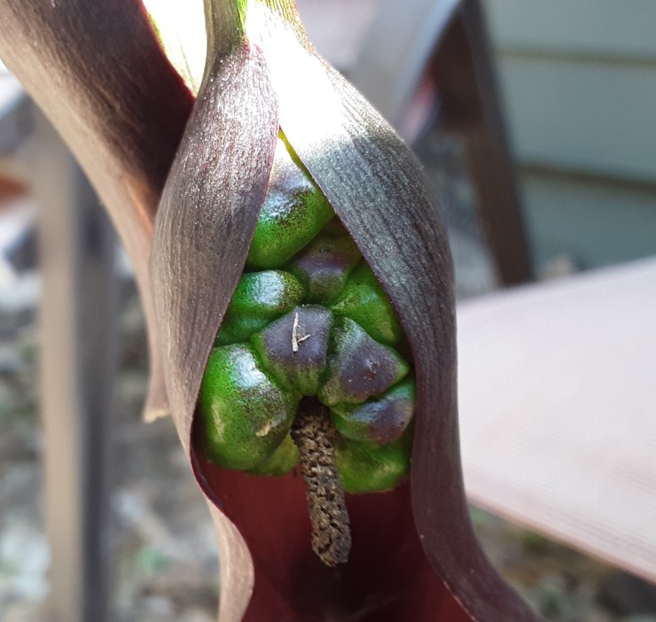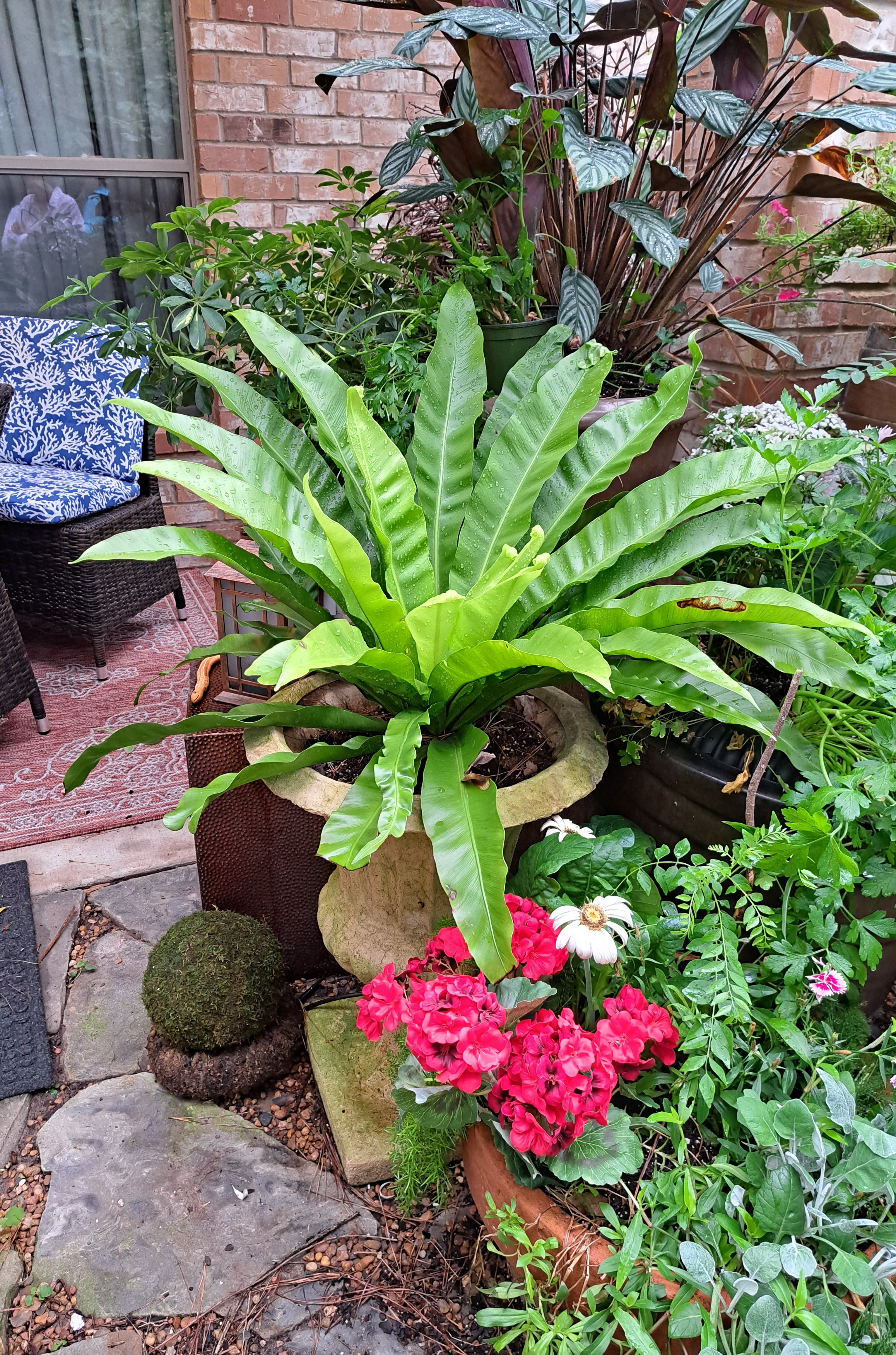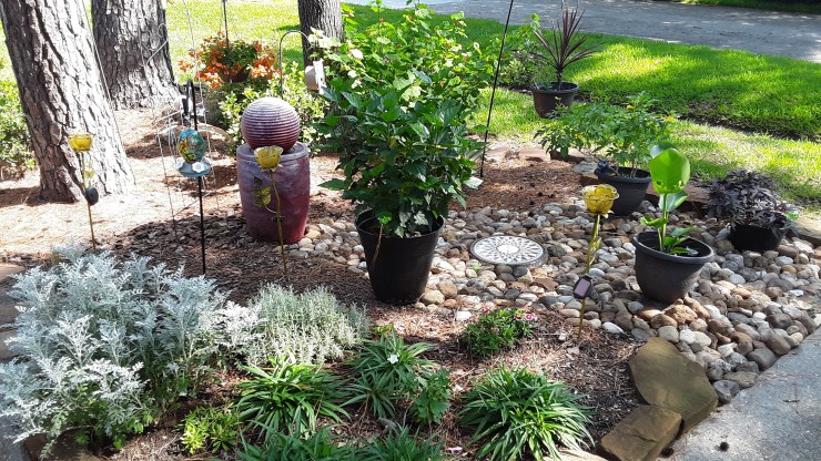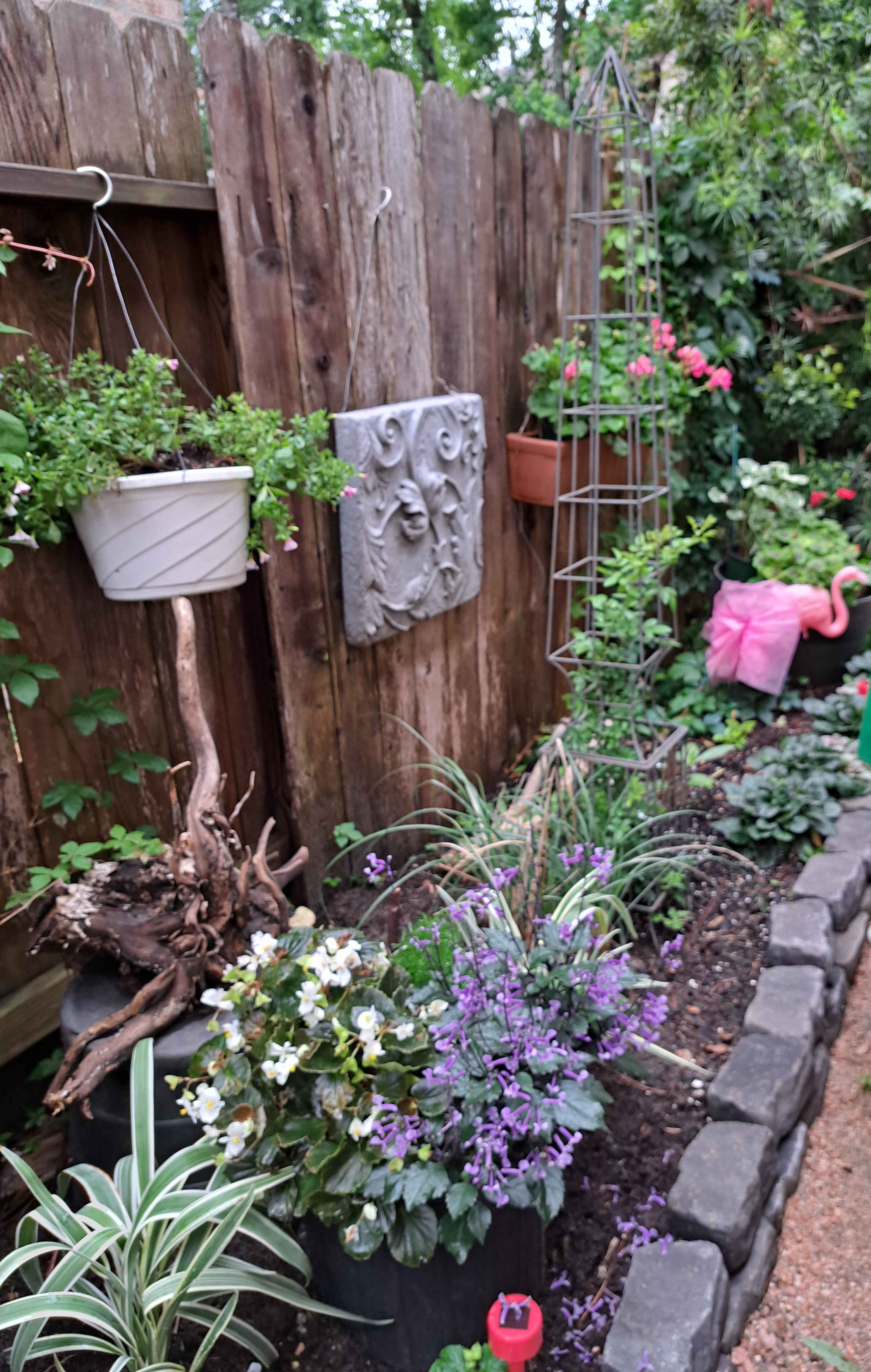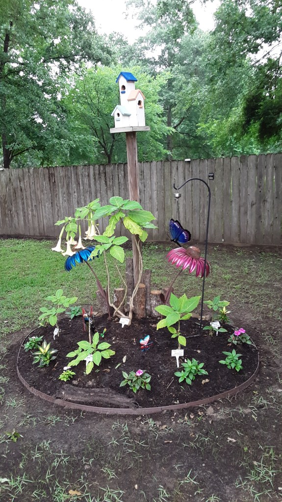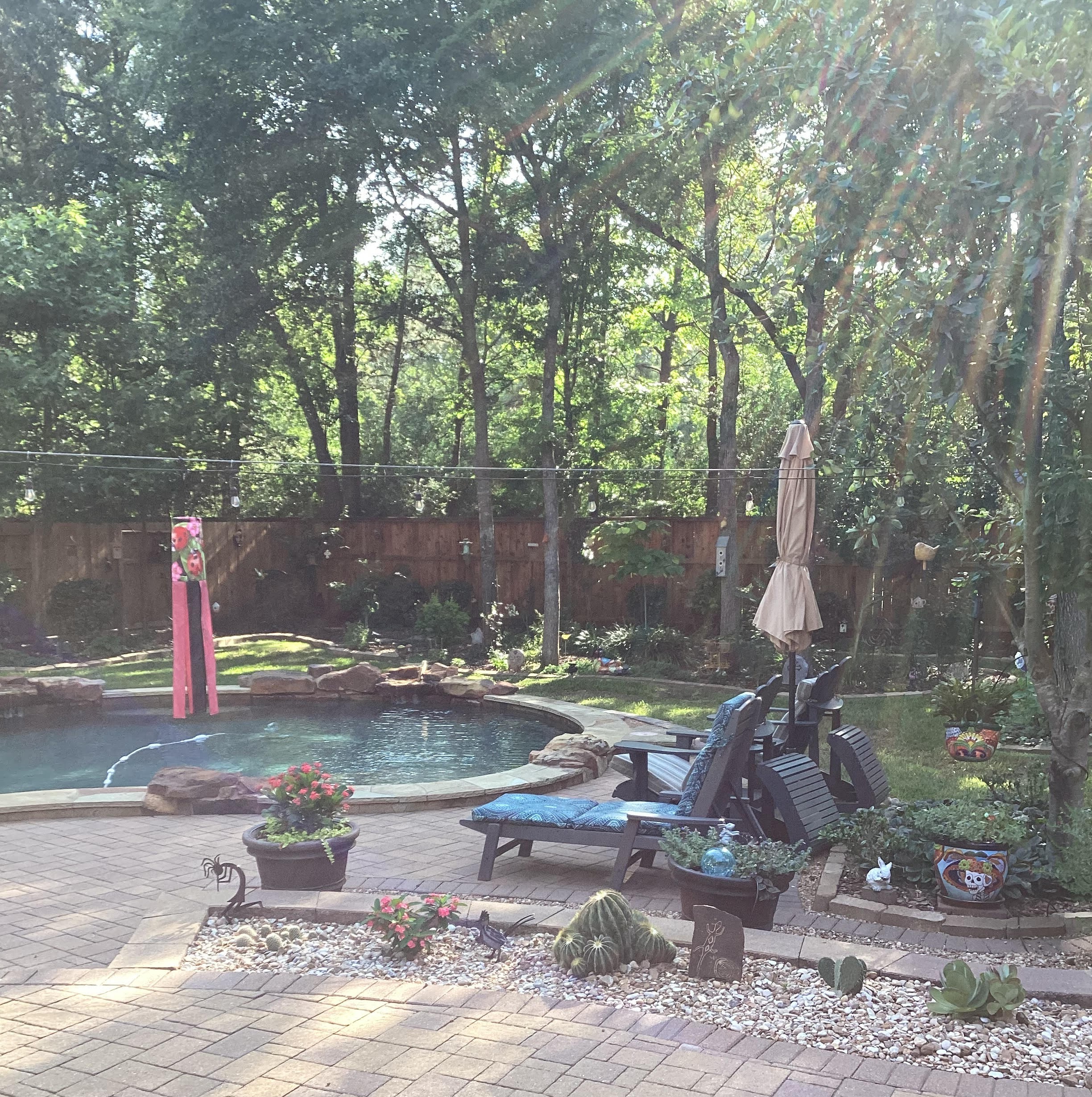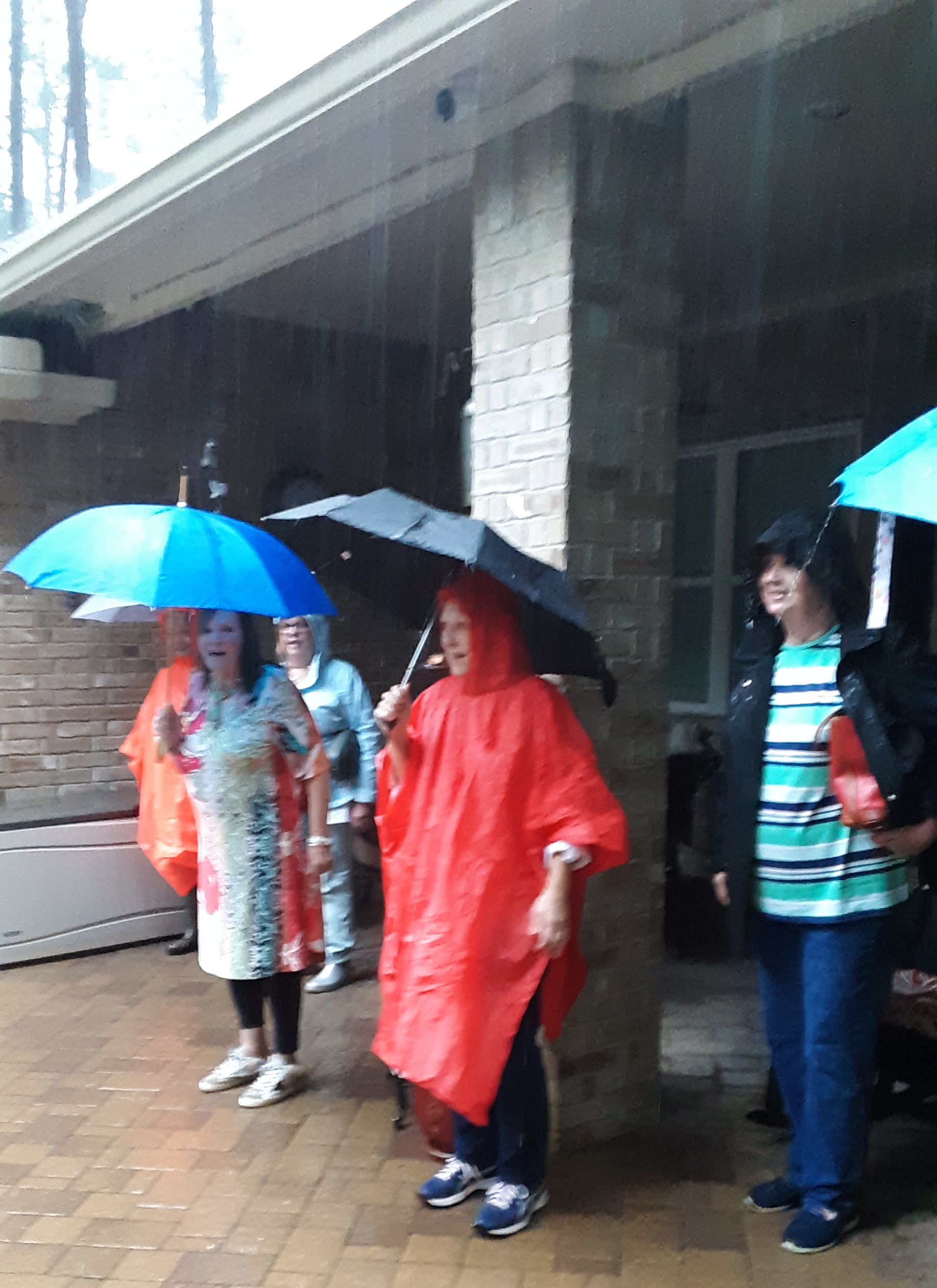 Did you hear that thunder rumble? On our way to Donna’s the downpour started… We admired the beautiful backyard from the shelter of the covered patio and Donna kindly provided pictures after the storm.