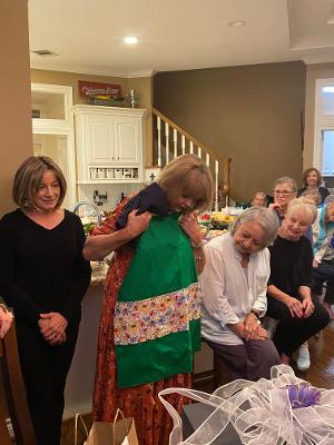 The weather forced the installation ceremony and picnic indoors and we appreciate Bitsey accommodating 40+ hungry and wet garden club members. Sharon Podolski was named “Member of the Year,” and outgoing President Bitsey had a surprise gift for all the committee chairs.