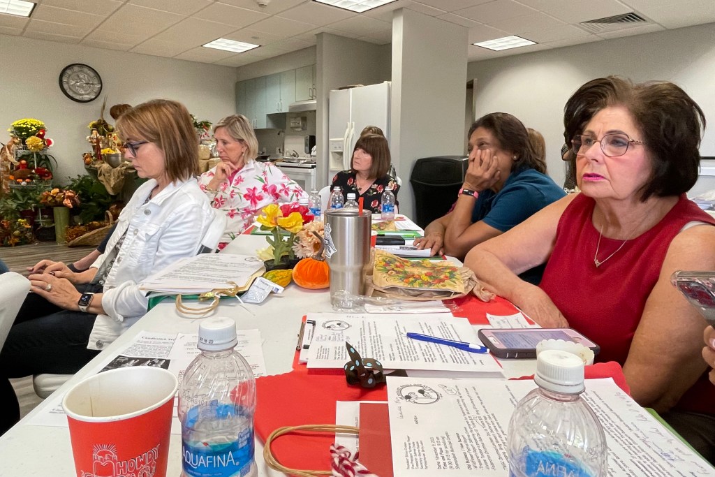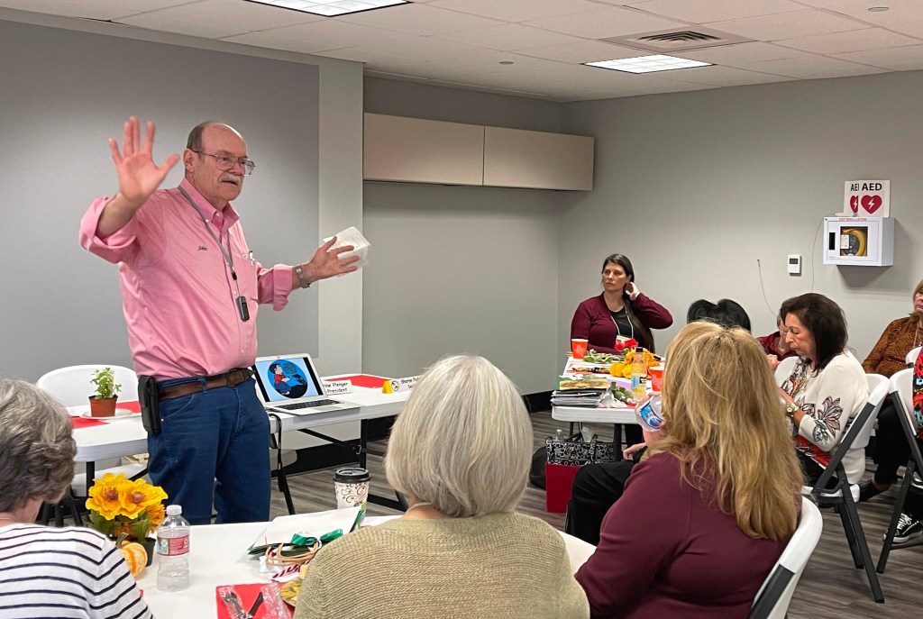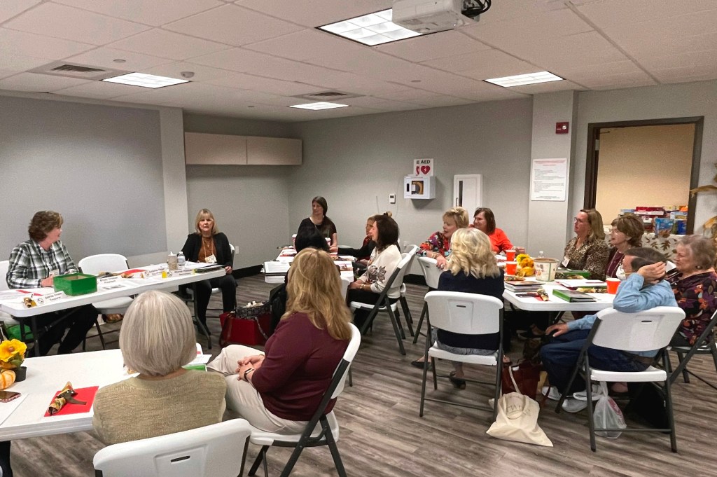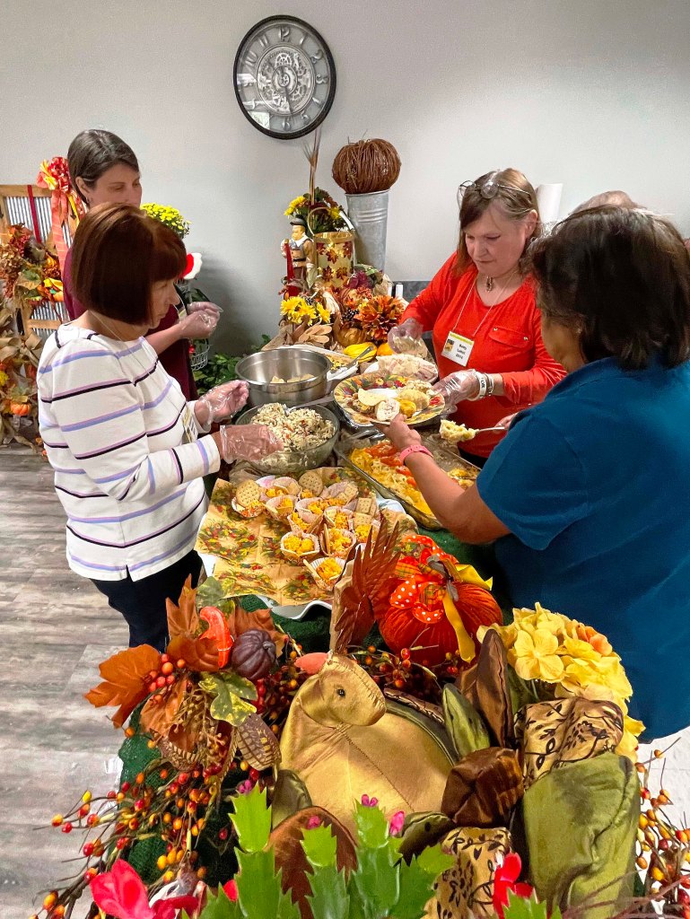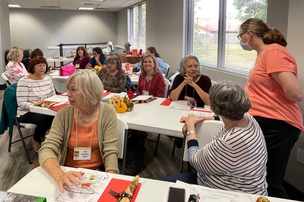 Mary distributed the bags to fill for the women’s shelter Christmas gifts. Sharon thanked all the volunteers and crafters who made the fundraiser at the Wildflower Festival a tremendous success, and Betty organized a food drive for the Shenandoah Municipal Complex who graciously host our meetings.