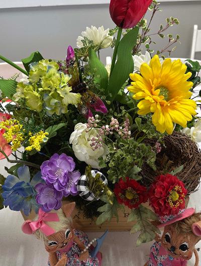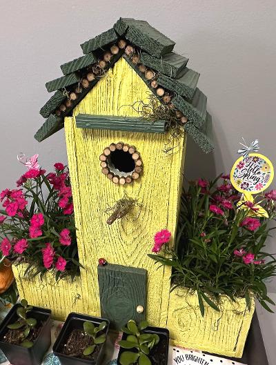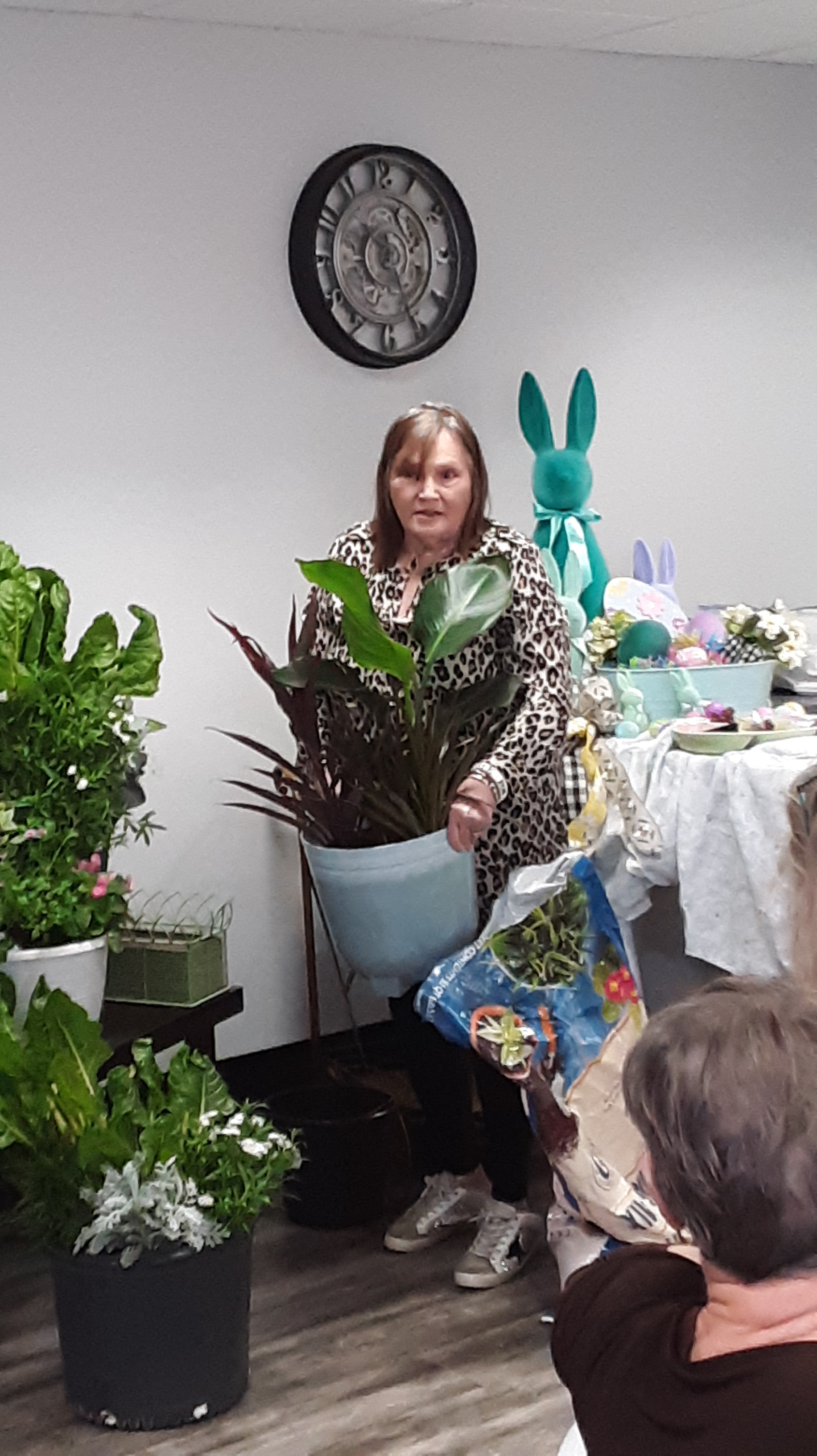Thanks to Ann Young for bringing the bird nest jewelry she is making for the plant sale, Paulette Shaw for gifting a lovely birdhouse/planter box to the drawing (congratulations to Diane Wedgeworth for winning the prize!), and Betty for donating 4 table arrangements for the plant sale. Mary Barnes collected Easter gifts for the children in the women’s shelter.