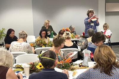 We are grateful for the many talented members in our garden club. Parliamentarian and past president Betty Lahiri, an incredibly gifted floral designer, creates a new decor for each meeting. The centerpiece was a stunning rose arrangement in a pumpkin to celebrate this year’s club theme: “Stop and Smell the Roses.”