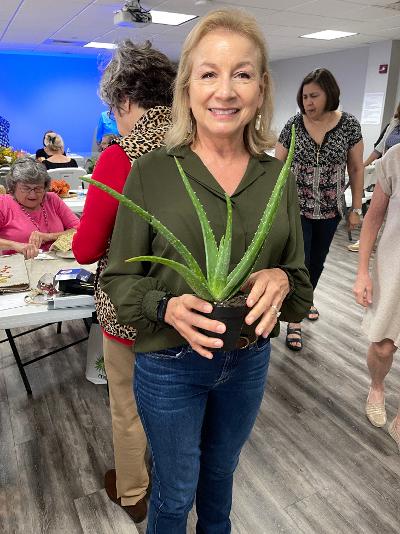 Plant Study: Edie Apiscopa presented Duranta, a flowering shrub in the verbena family. It’s a hardy plant that will come back after a freeze AND tolerates our hot summers, and it attracts hummingbirds and bees. The cascading blooms are beautiful but the berries are toxic to humans and pets. Edie donated the plant to the drawing.