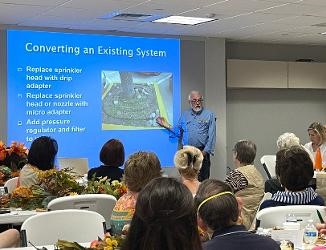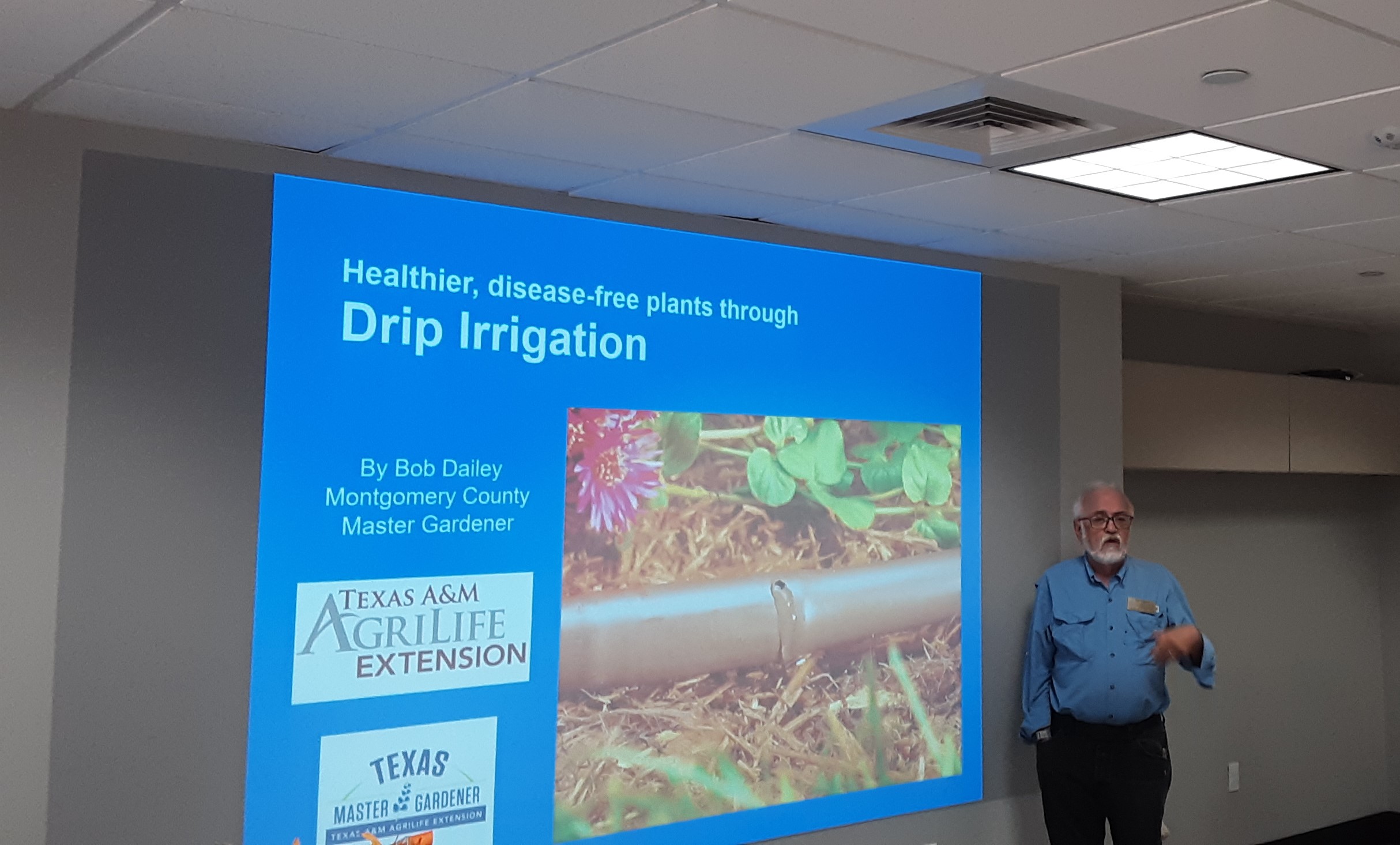 Master Gardener and co-Founder of the Native Plants Society of Texas Pines and Prairies Chapter, Bob Dailey, presented an educational program on drip irrigation from new installation to converting an existing sprinkler system.
