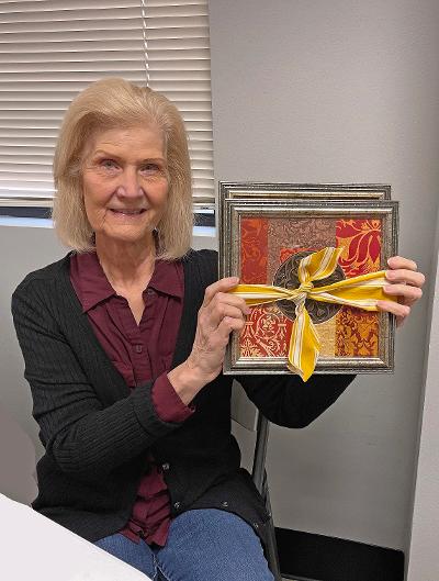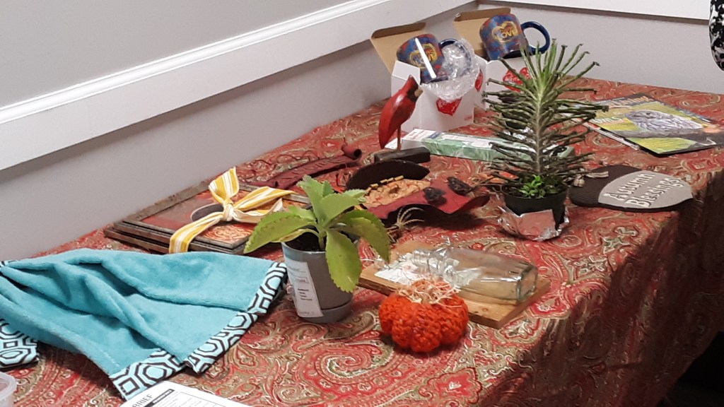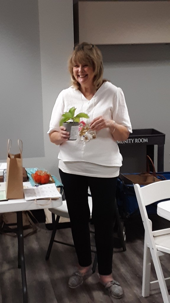 Sharon Podolski, Mary Barnes and Bitsey Crismon brought samples of crafts for the upcoming sale, and donated several items for the drawing. Congratulations to the winners!