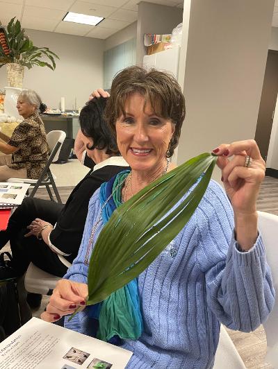 TWGC’s Vilma Jurado Lopez shared her knowledge and skills about leaf manipulation presenting a fabulous program to enhance flower arrangements with tricks of the trade. Vilma is also a member of the Texas State Florists Association (TSFA), the Society for the Advancement of Floral Design (SAFD), Far Corners Garden Club, and the Houston Federation of Garden Clubs. She demonstrated several ideas and provided a very helpful handout – timely and inspirational especially with the holidays around the corner.