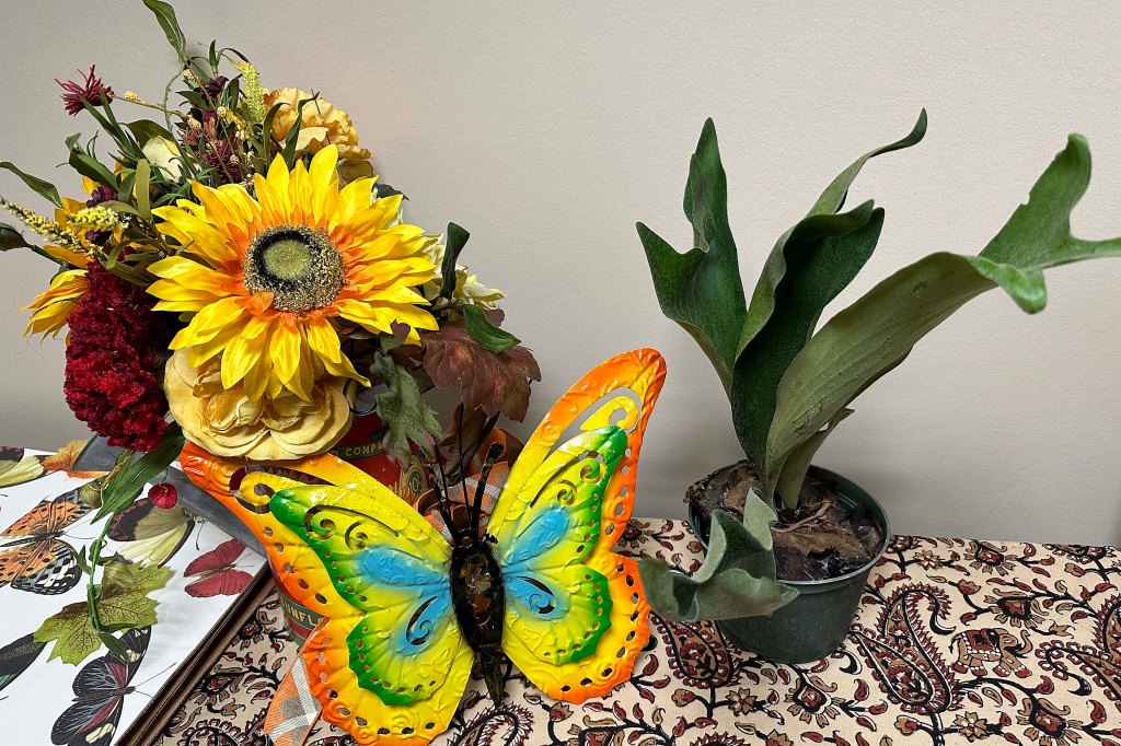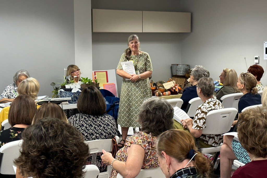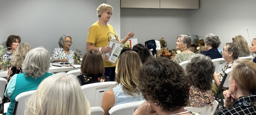 Betty Lahiri presented the Staghorn Fern Plant Study and she donated a beautiful plant to the drawing. The Horticulture Table was wildly successful with members donating a variety of plants to the drawing as well. Thanks to all the members who shared plants from their garden. We had Anthurium, Crown of Thorns, Texas Sage, Lilies, Hardy Hibiscus seeds, and more. BIG thank you to Paulette Shaw who gave each participant a small container with rooted cuttings.