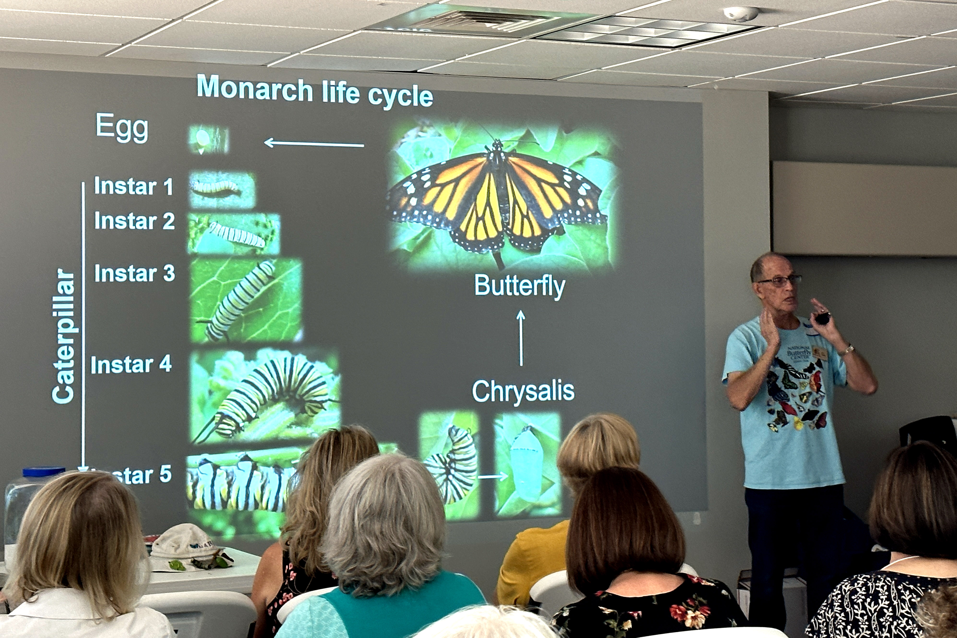 We learned “All About Monarchs” with Don Dubois, a North American Butterfly Association (NABA) Contributor, Butterfly Enthusiasts of Southeast Texas (Best) Member, and Mercer Botanic Garden Volunteer.