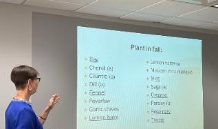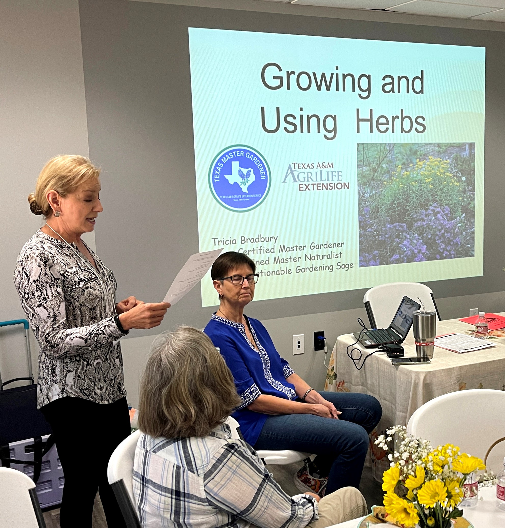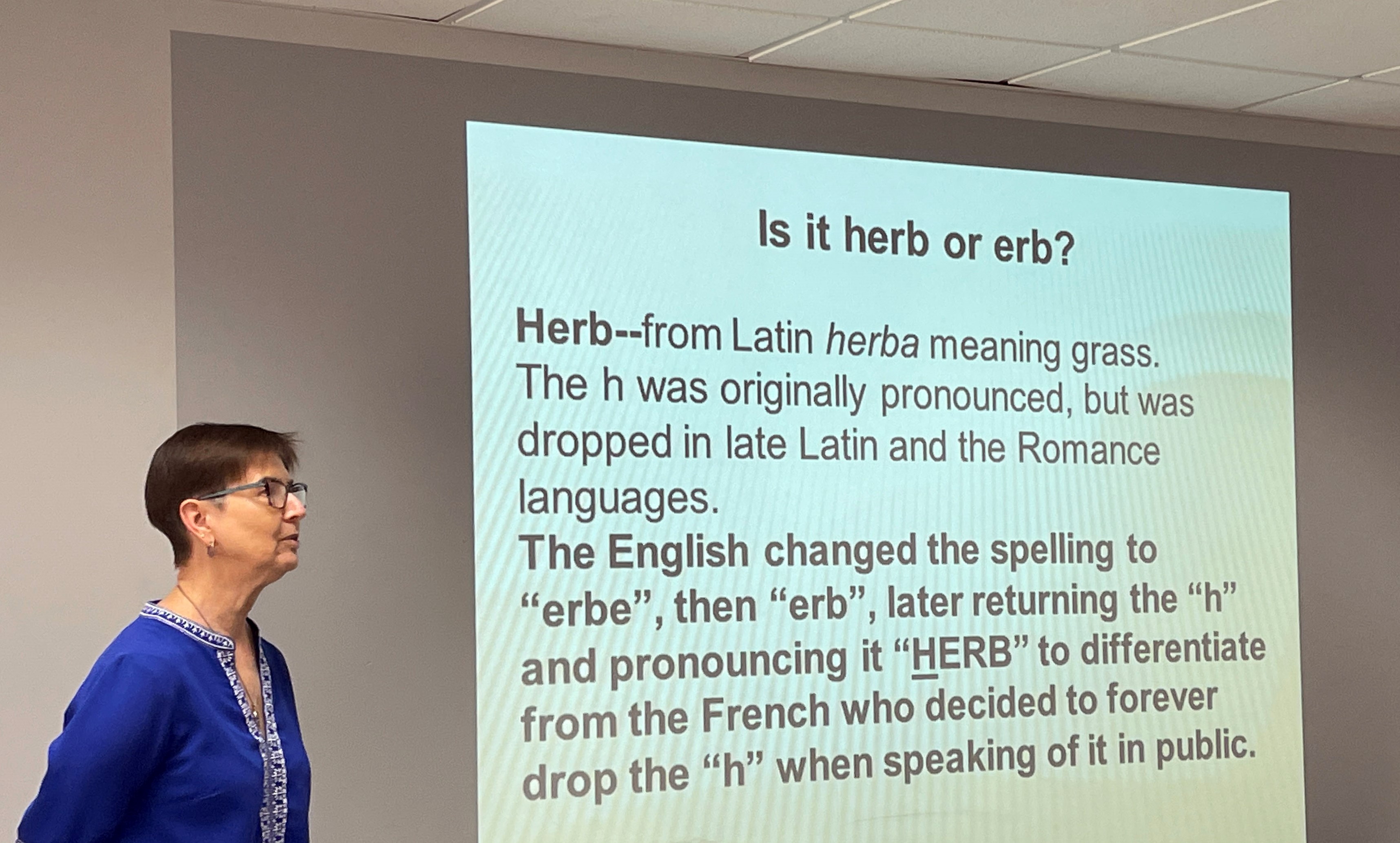 Vice President Katherine Plenger introduced Tricia Bradbury, Master Gardener and Master Naturalist, speaking about “Growing and Using Herbs.” Tricia brought delicious rosemary cookies and rose geranium pound cake. Click on the links for a recipe.